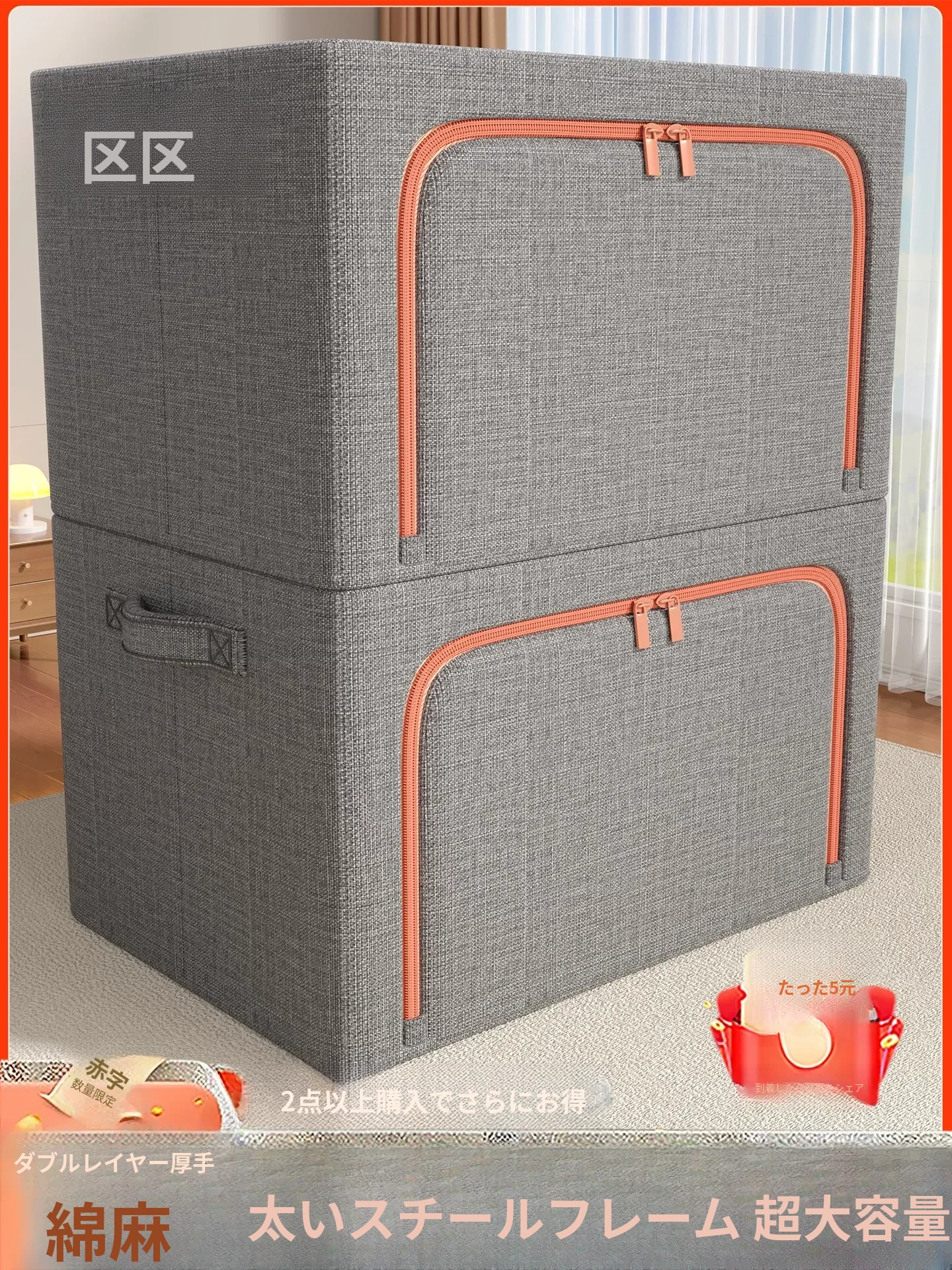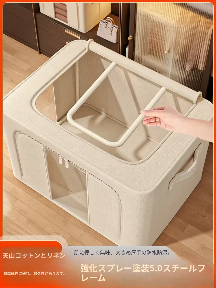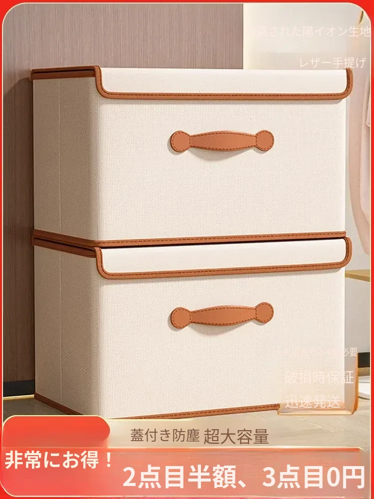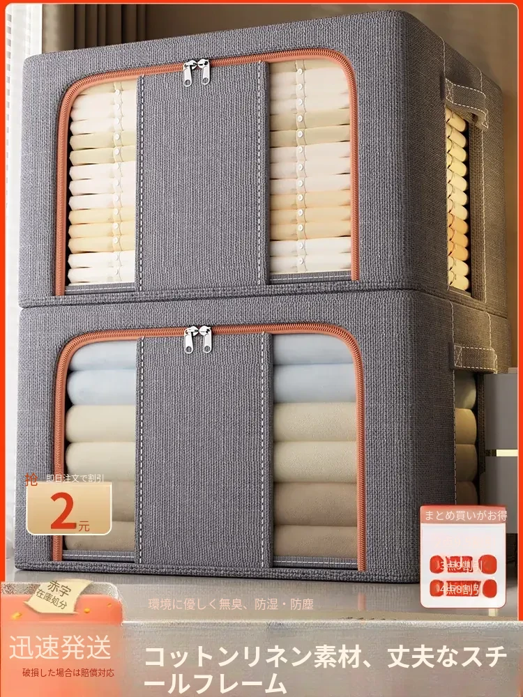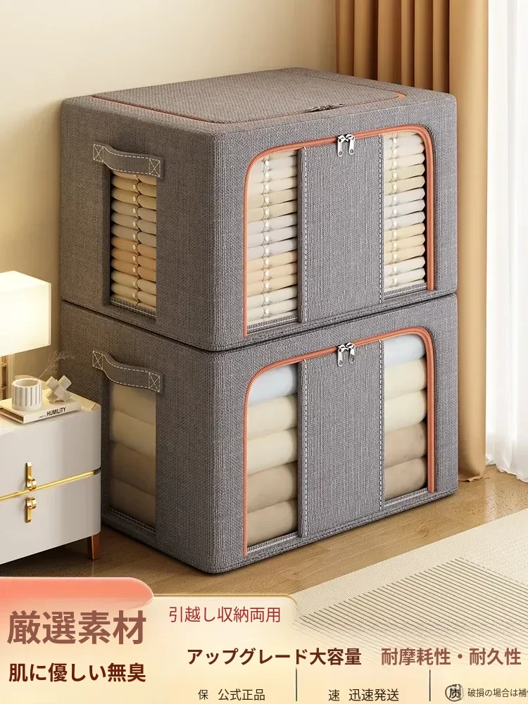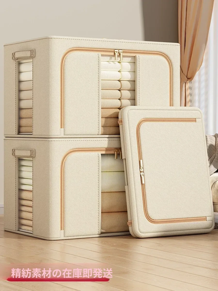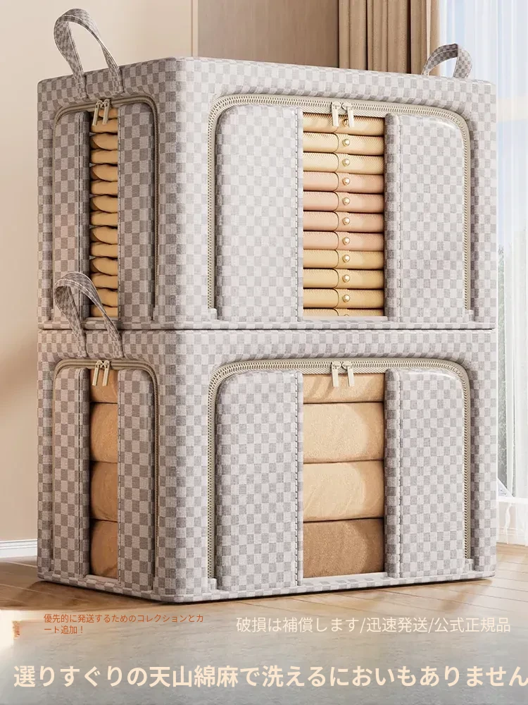 大容量!厚手コットンリネン衣類収納ボックス - 家族全員の衣類や布団がすっきり収納できる!おしゃれなデザインでクローゼットもスッキリ整理。