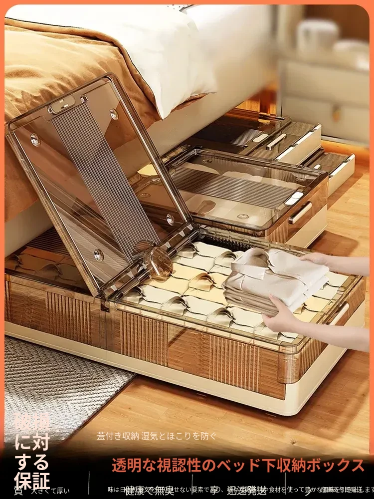 キャスター付きフラット収納ボックス、引き出し式衣類・布団収納の神アイテム!ベッド下スペースを有効活用し、すっきり整理整頓。家庭用に最適な収納ソリューション!