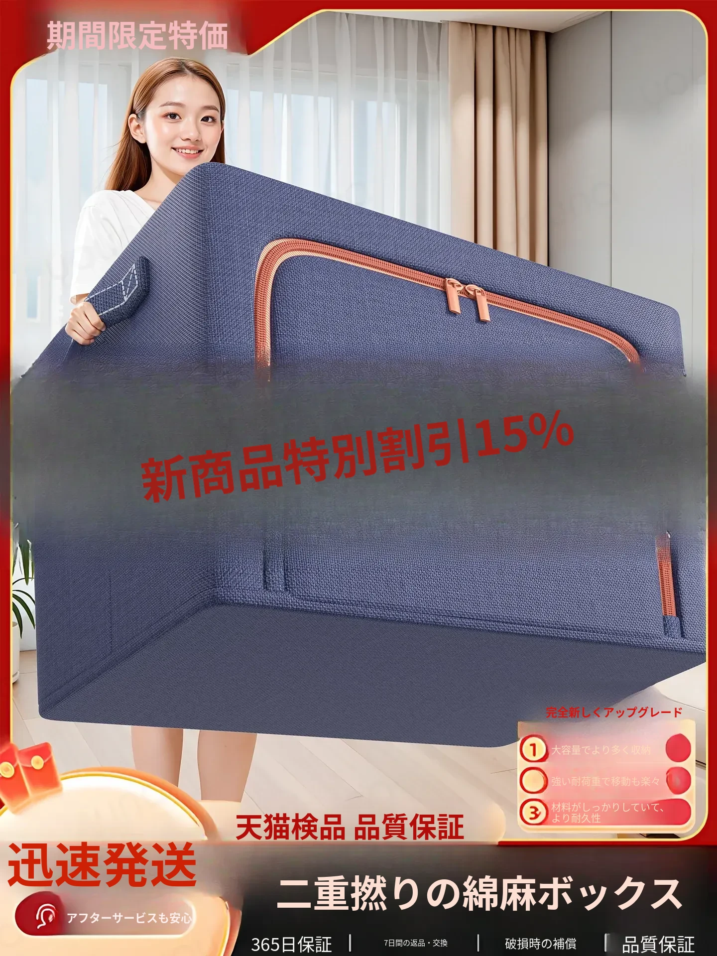 天山のコットンリネン収納ボックス - 大容量で衣類や布団もスッキリ整理!折りたたみ可能な便利アイテム、家中の整理整頓に最適!