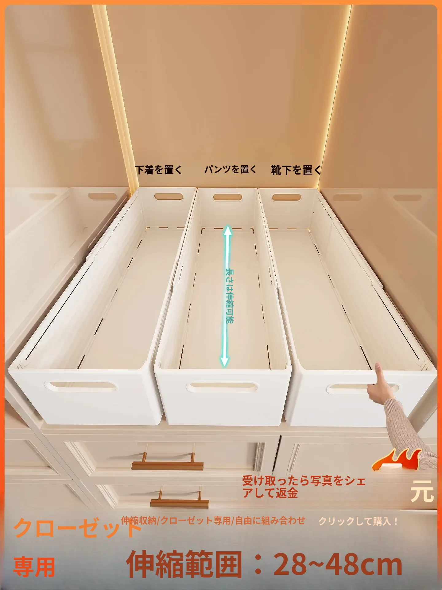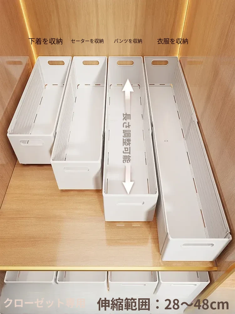 伸縮式衣類収納ボックス|下着・靴下・パンティの3in1整理ボックス|クローゼットをスッキリ!便利な分別収納アイテム