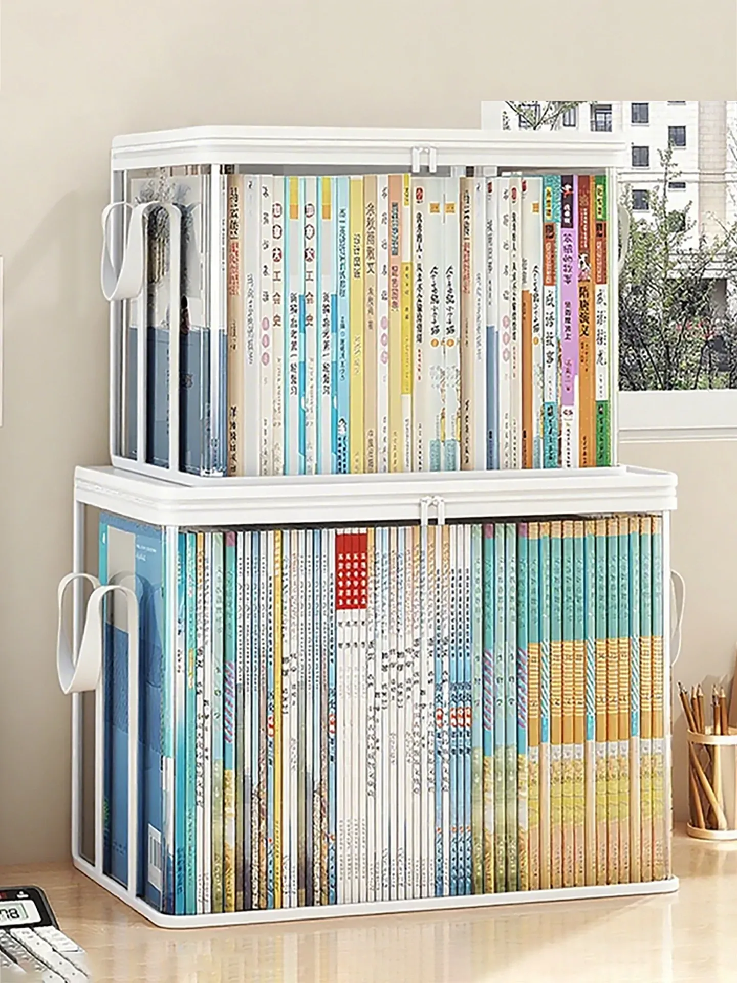 学生寮や教室に最適!透明で折りたためる書籍収納ボックス - 本の整理が簡単にできる便利アイテム!