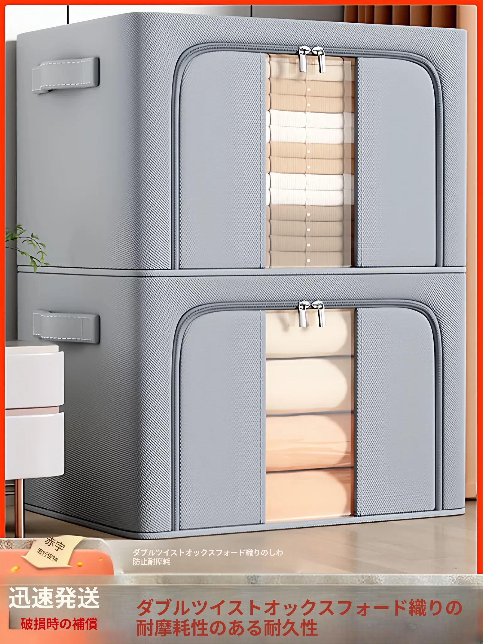 大容量収納ボックス - 衣服や布団に最適!折りたたみ可能なデザインで、クローゼットもスッキリ整理。家族みんなの収納ニーズに応える便利なアイテムです!