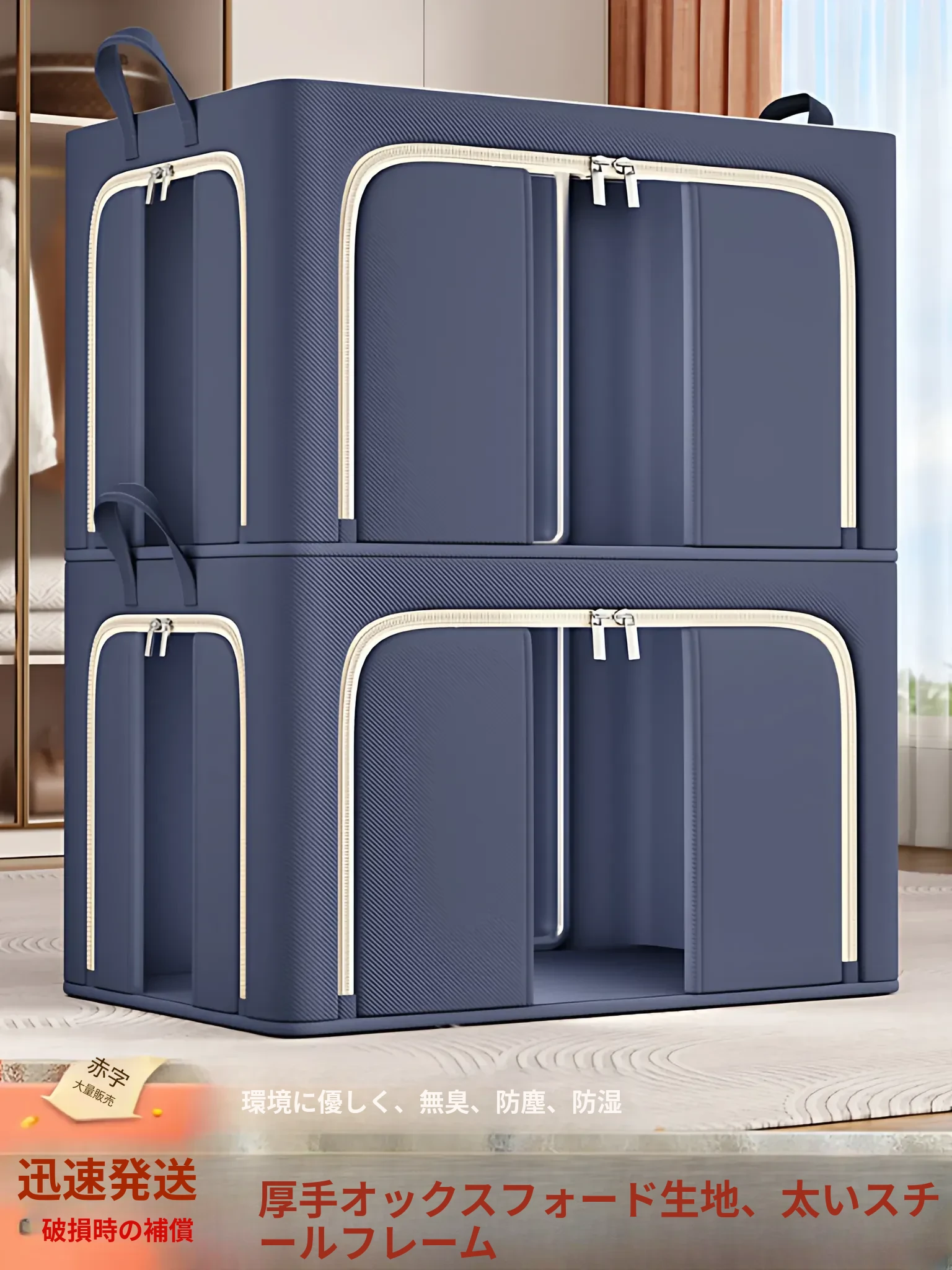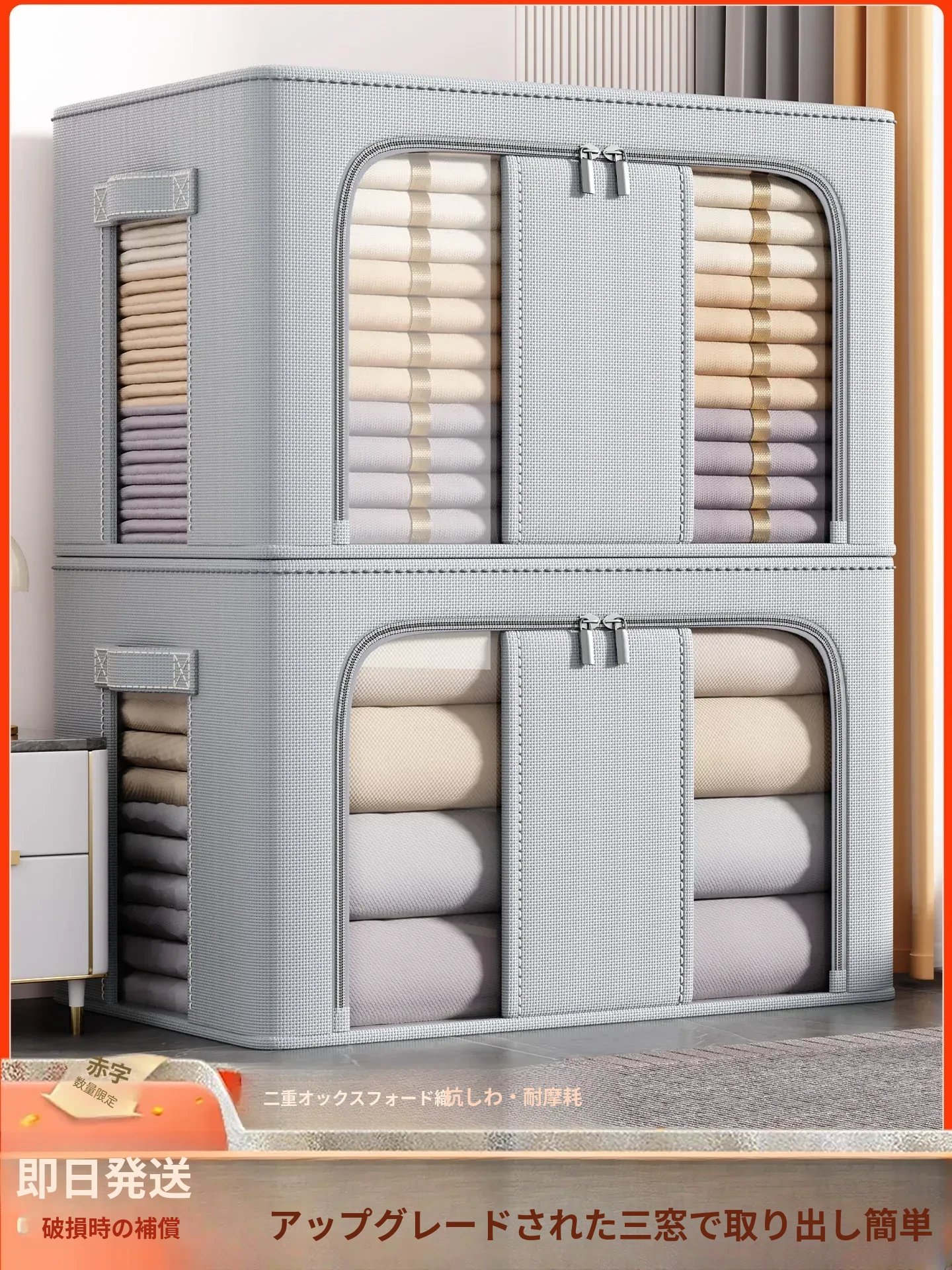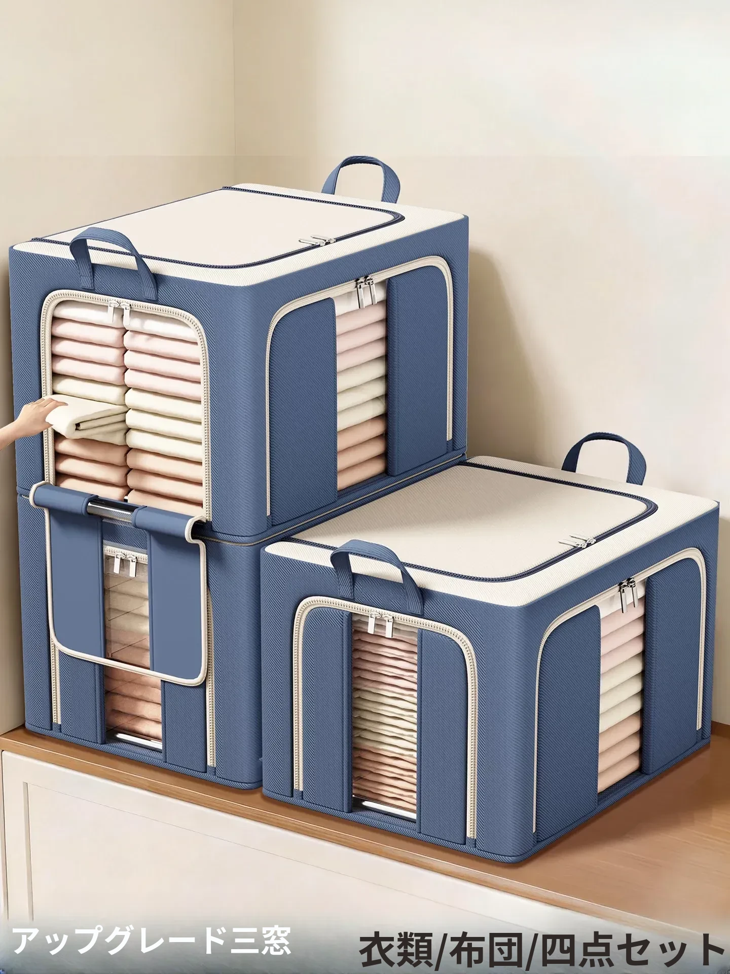 大容量収納ボックス|季節の衣類や布団をスッキリ整理!おしゃれなファブリック収納で、ニットやパンツも簡単整理。お家がすっきりする便利アイテム!