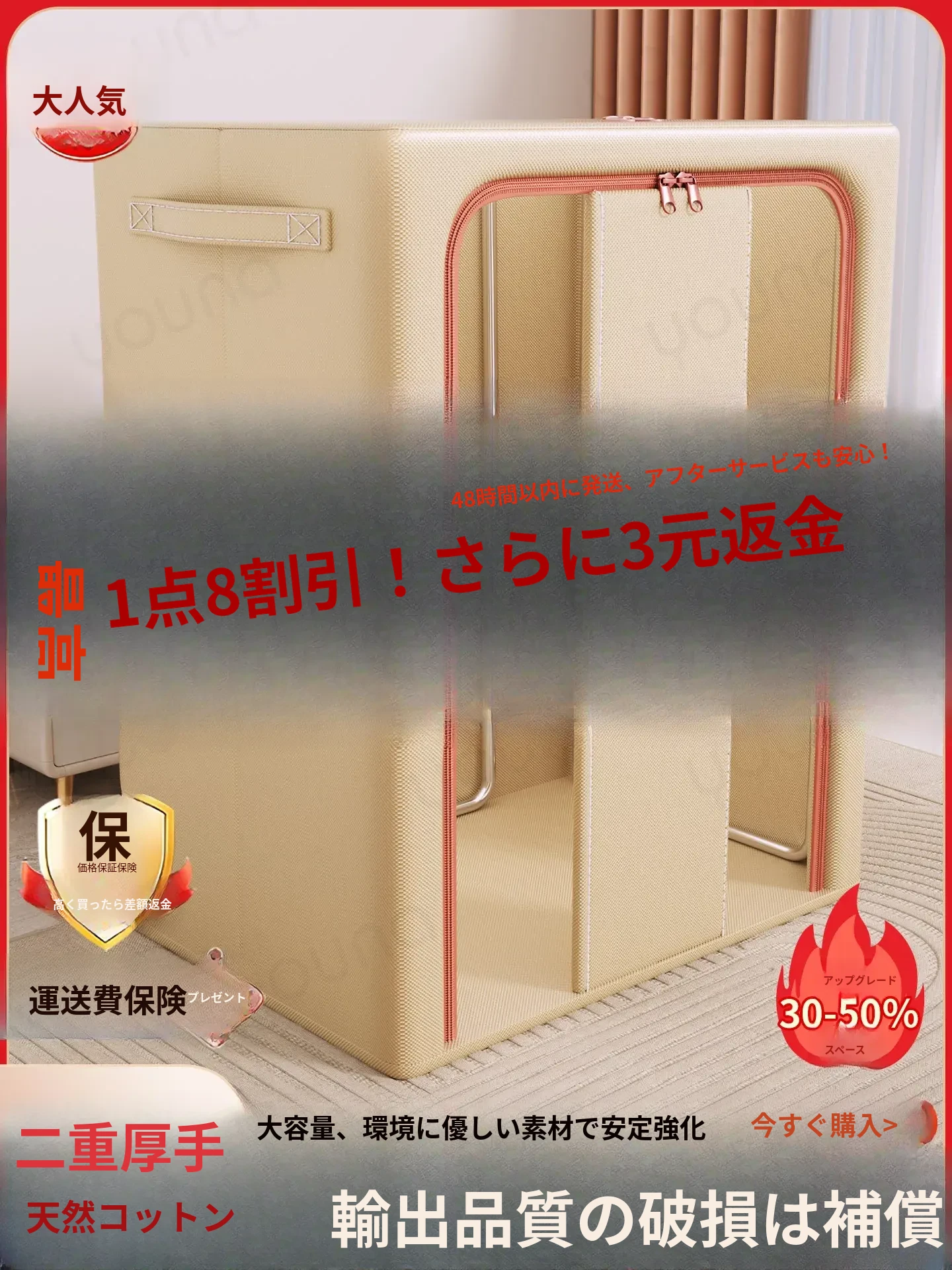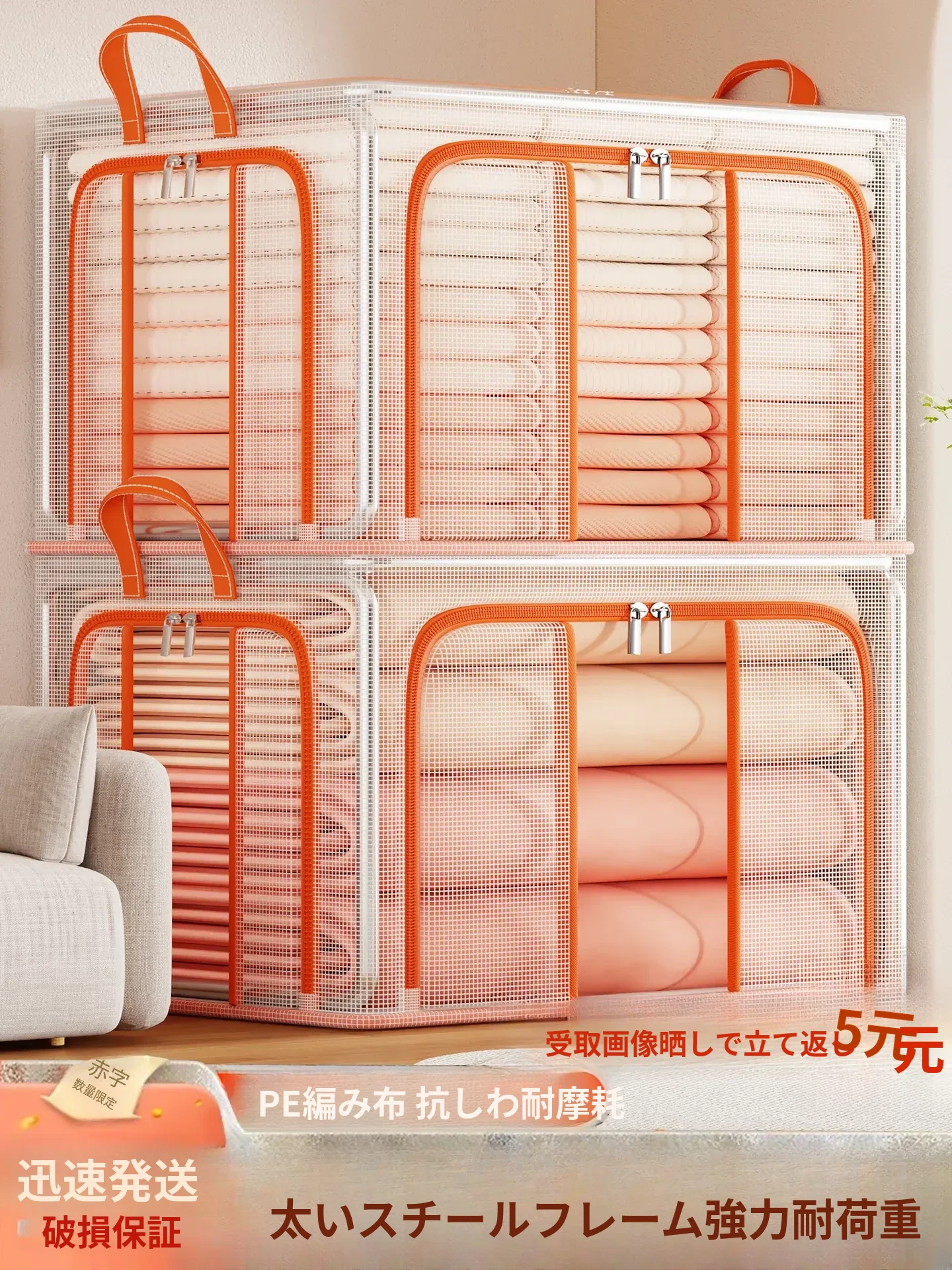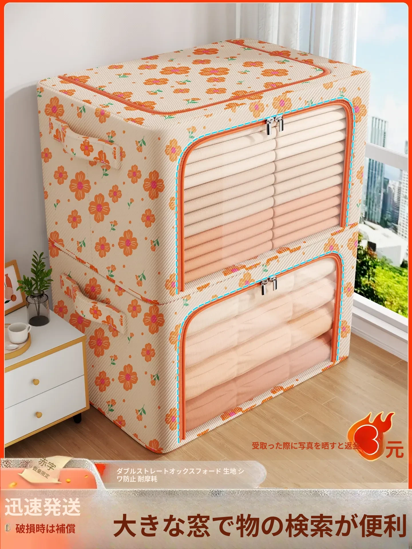 大容量収納ボックス|季節の衣類や布団をスッキリ整理!おしゃれなファブリック収納で、ニットやパンツも簡単整理。お家がすっきりする便利アイテム!