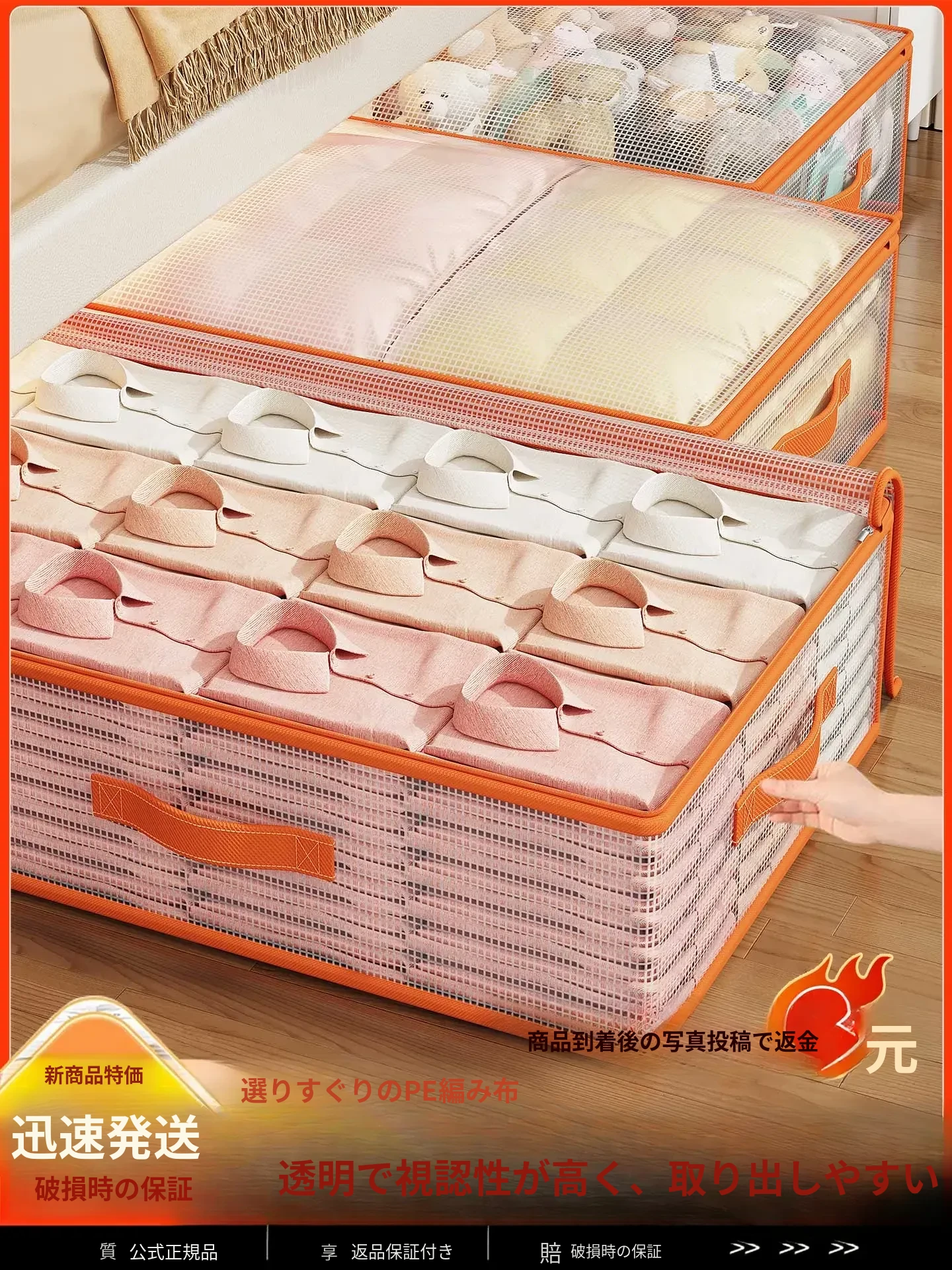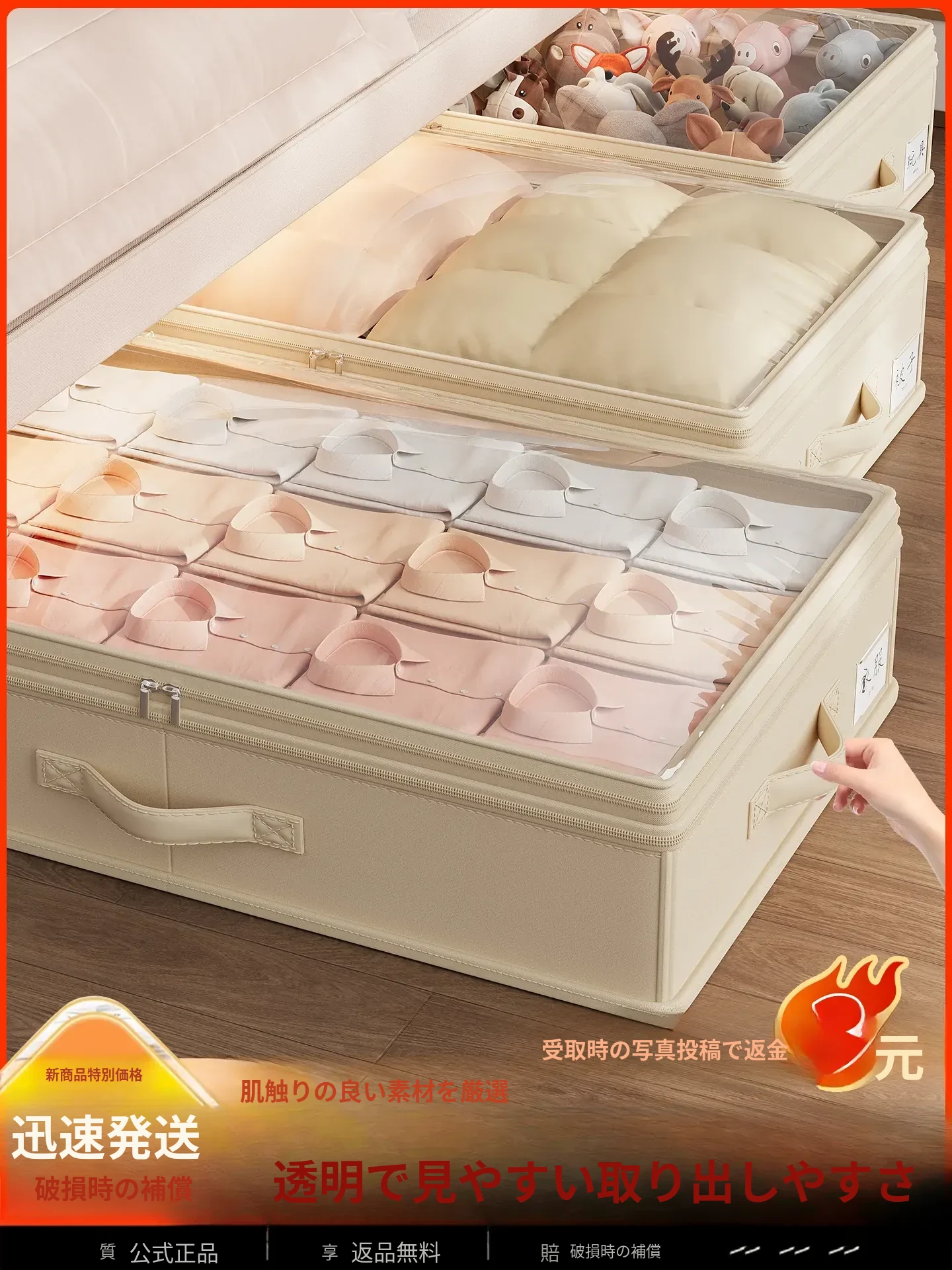 透明大容量ベッド下収納ボックス|衣類・布団もスッキリ整理!おしゃれで便利な収納アイテム!あなたの生活空間をもっと快適に!
