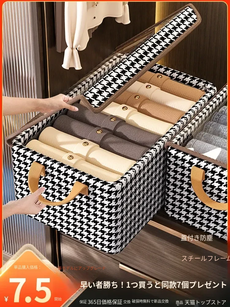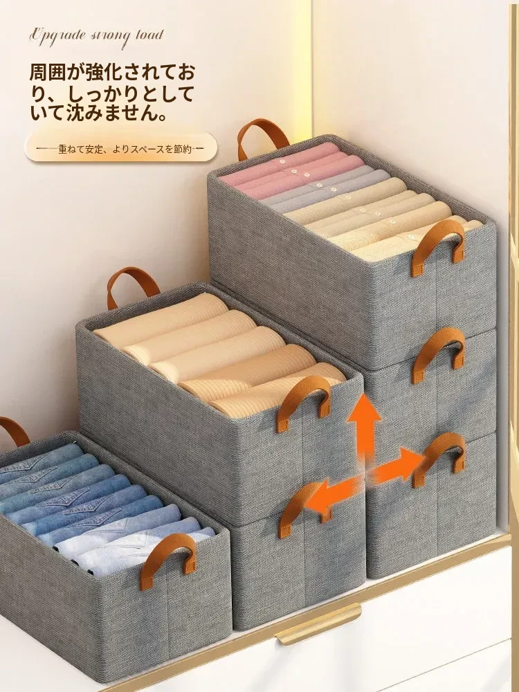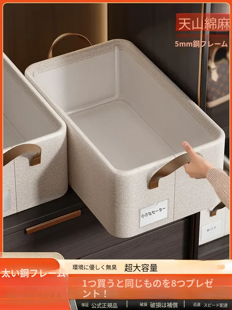 天山のコットンリネン収納ボックス - 家庭用折りたたみ式衣類収納ケース、引き出しタイプでパンツや衣服をスッキリ整理!おしゃれで実用的な収納アイテム!