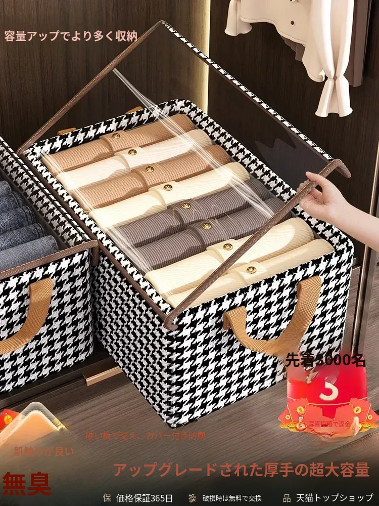 衣類収納ボックス 家庭用千鳥格デザイン 衣服・パンツ整理ボックス クローゼットの必需品!折りたたみ可能なファブリックストレージバスケットでスッキリ整理!