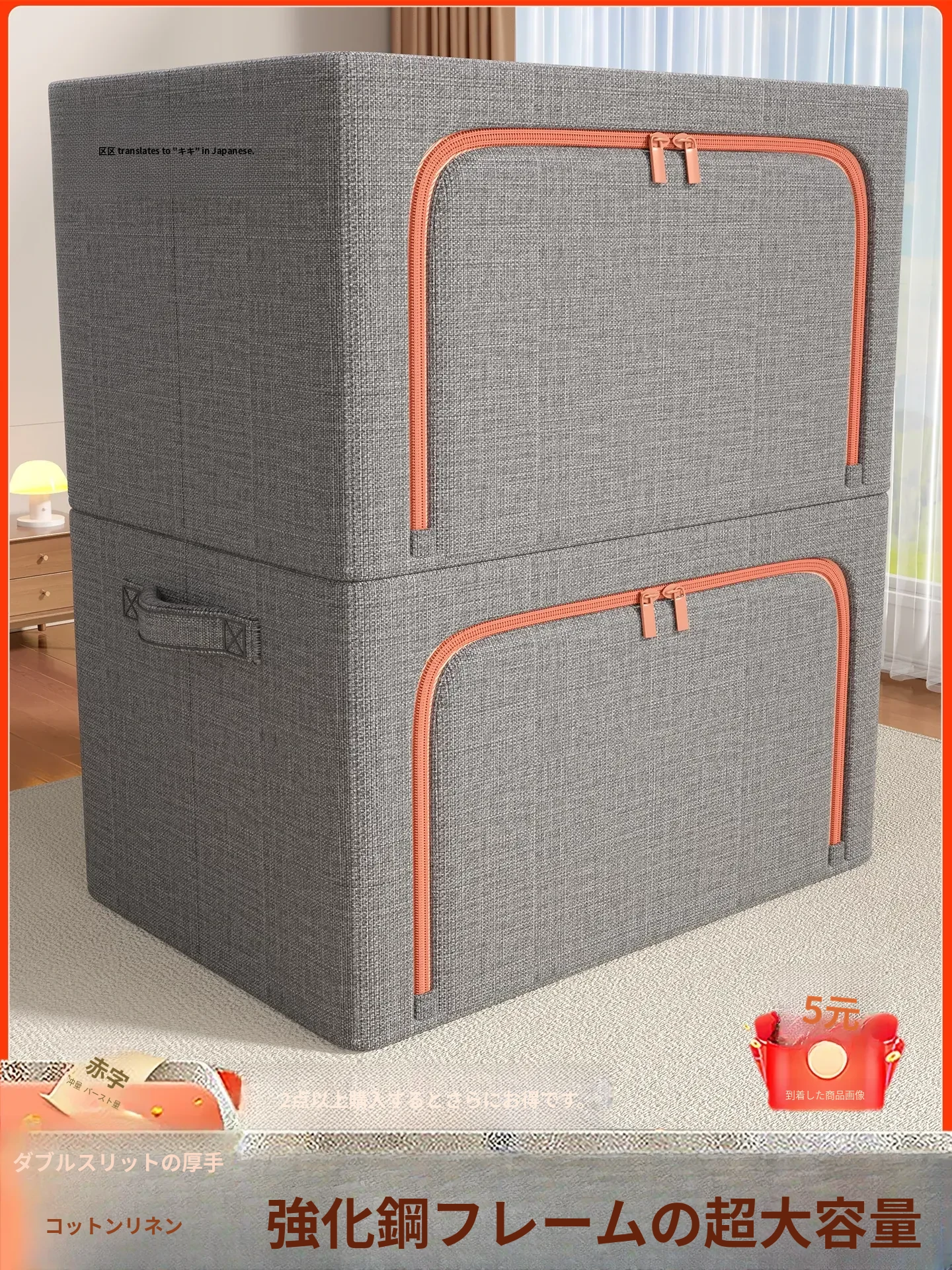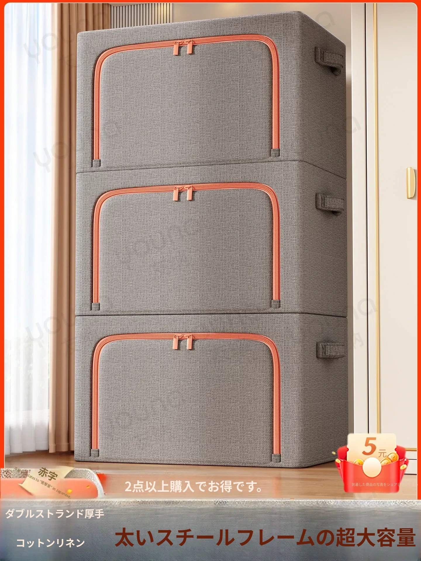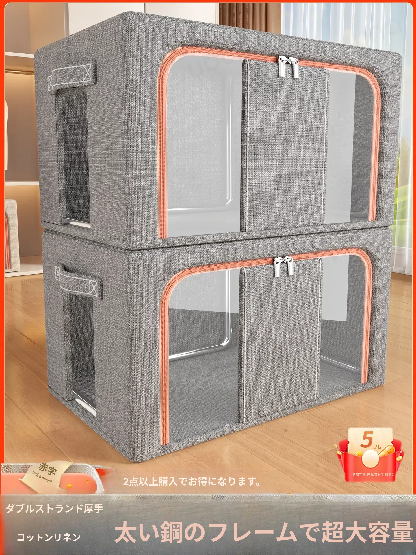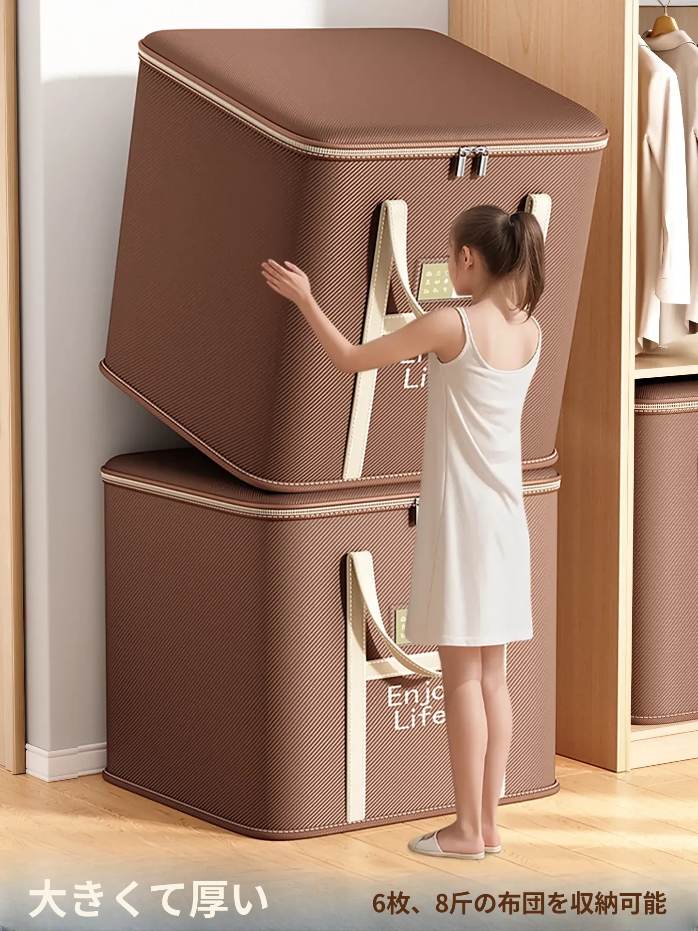 整理のプロおすすめ!大容量コットンリネン収納ボックス - ダウンジャケットや布団もすっきり収納できる衣類整理ボックス。クローゼットをすっきり整頓し、生活空間を広げましょう!