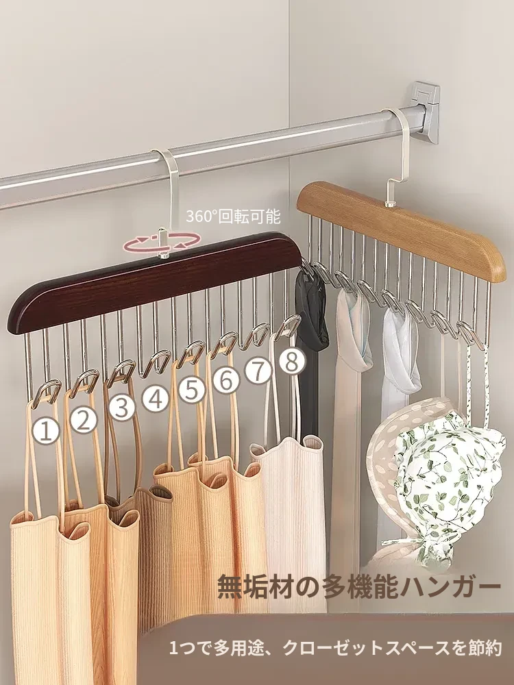 ブラジャー収納の決定版!木製ハンガーでブラ、キャミソール、パンティ、ストッキングをすっきり整理!家庭用に最適なスタイリッシュな収納アイテム。あなたのお部屋を美しく保ちましょう!
