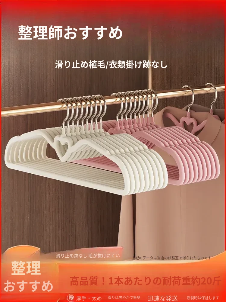 厚手防滑フロックハンガー2026年新作!整理のプロ推奨、家庭用・肩崩れ防止・無痕デザインで衣類をしっかり支えます。幅広で安心感抜群のハンガーで、衣類を美しく整理しましょう!