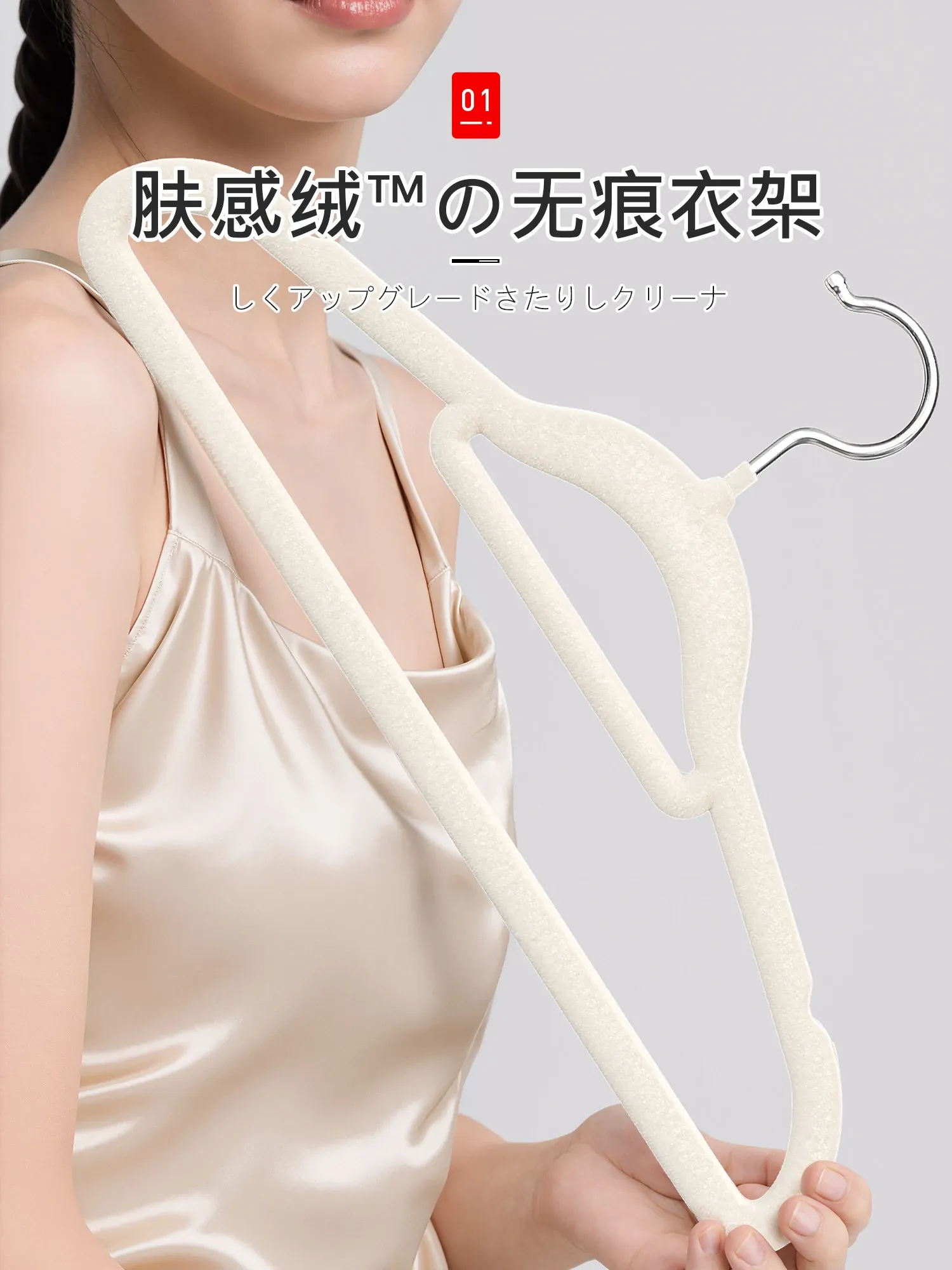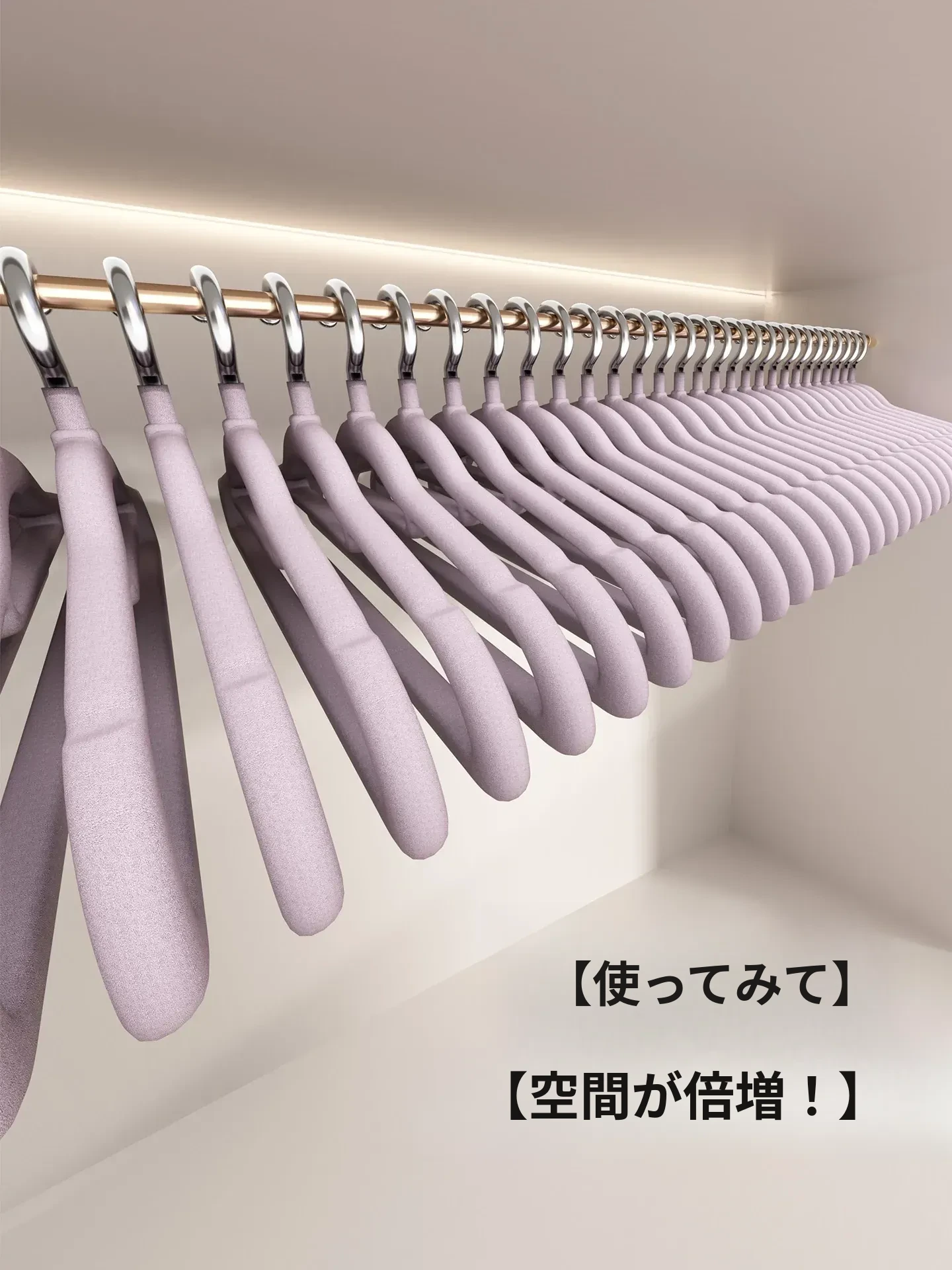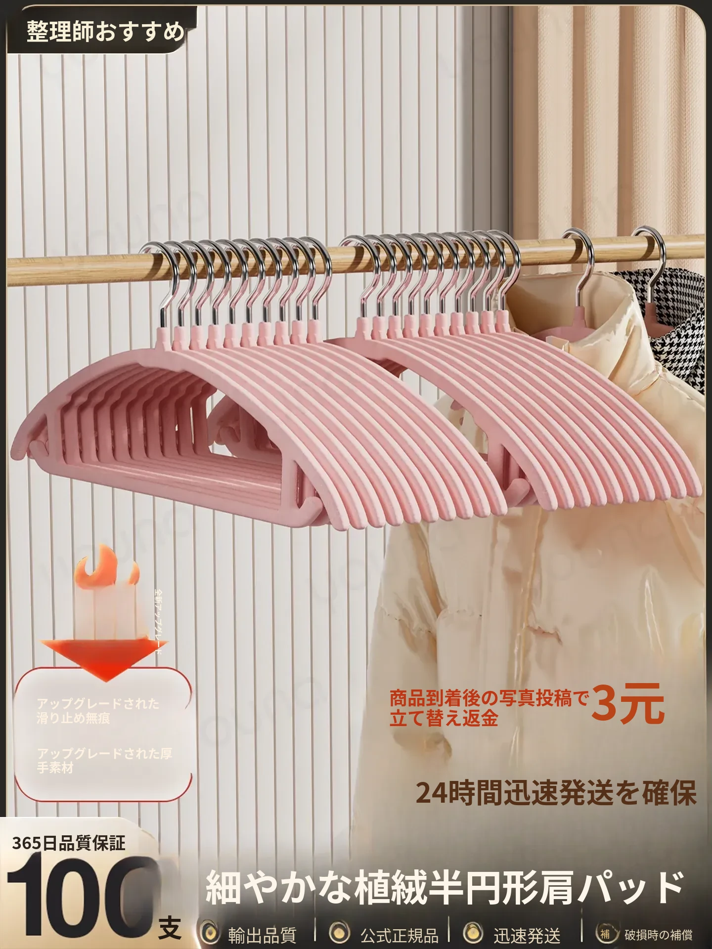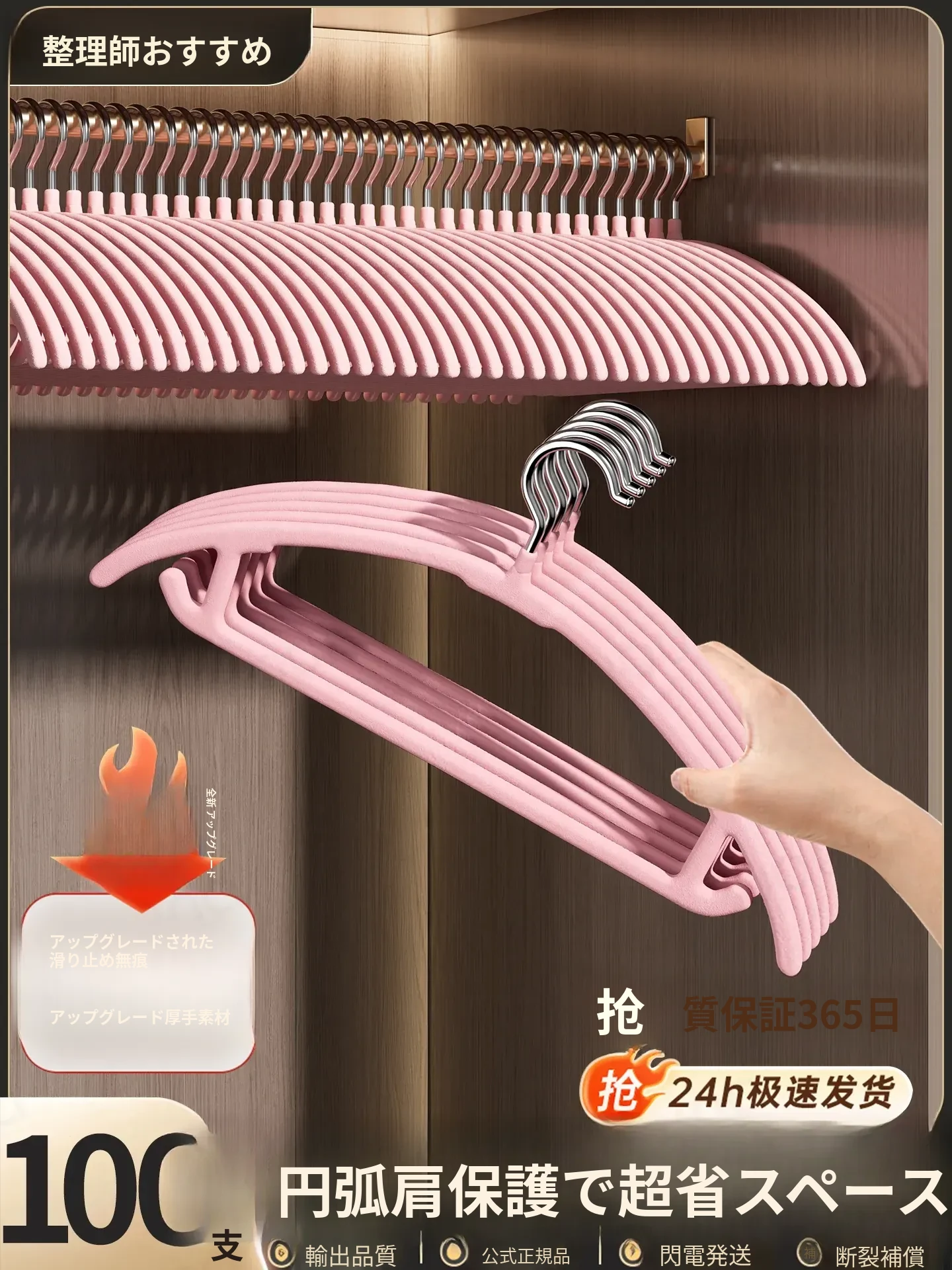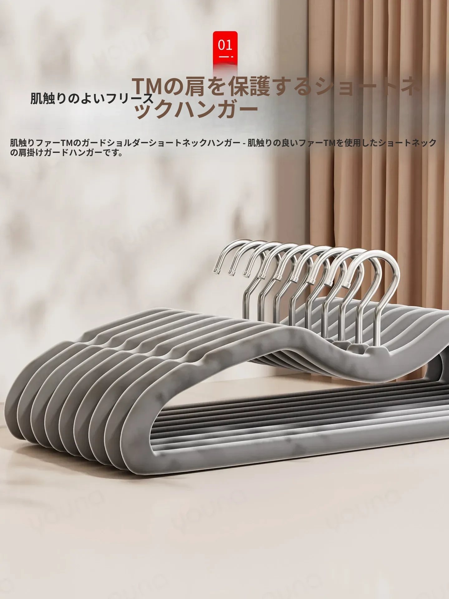 滑らないデザインで衣類をしっかりサポート!日本式フロッキー衣類ハンガー - 家庭用、無痕で肩のラインを守る、整理整頓に最適な衣類ハンガー。衣類を美しく保ちます!
