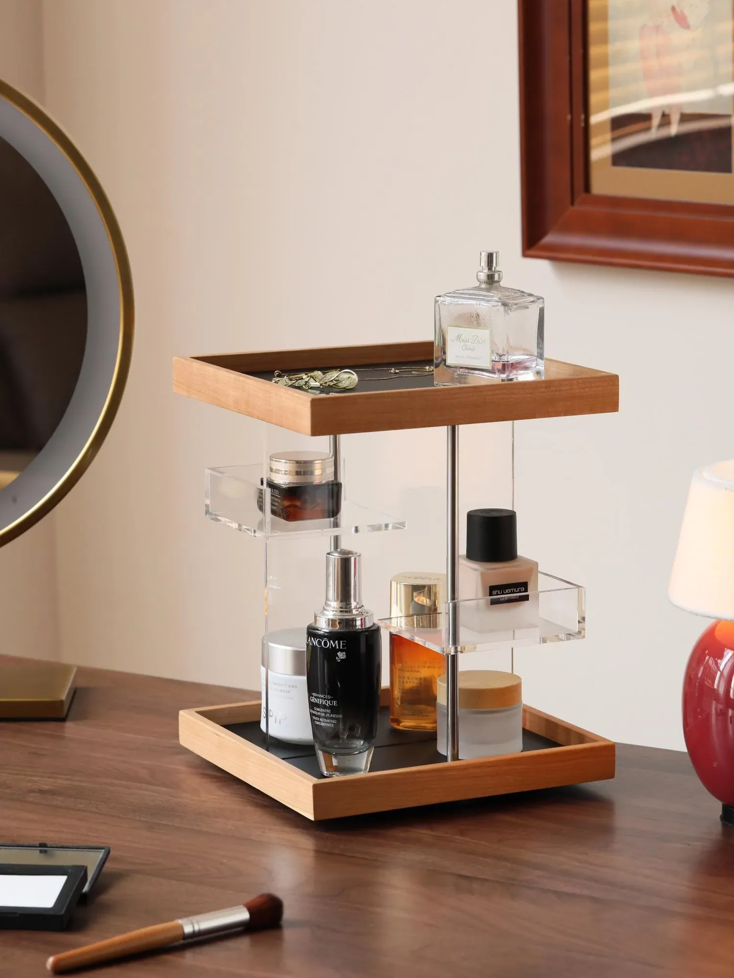 魅力的な回転式化粧品収納ボックス - デスクトップ用のジュエリー&香水トレイ、玄関やドレッサーに最適な高級木製収納ラック!おしゃれな整理整頓を実現し、毎日のメイクアップを楽しく!