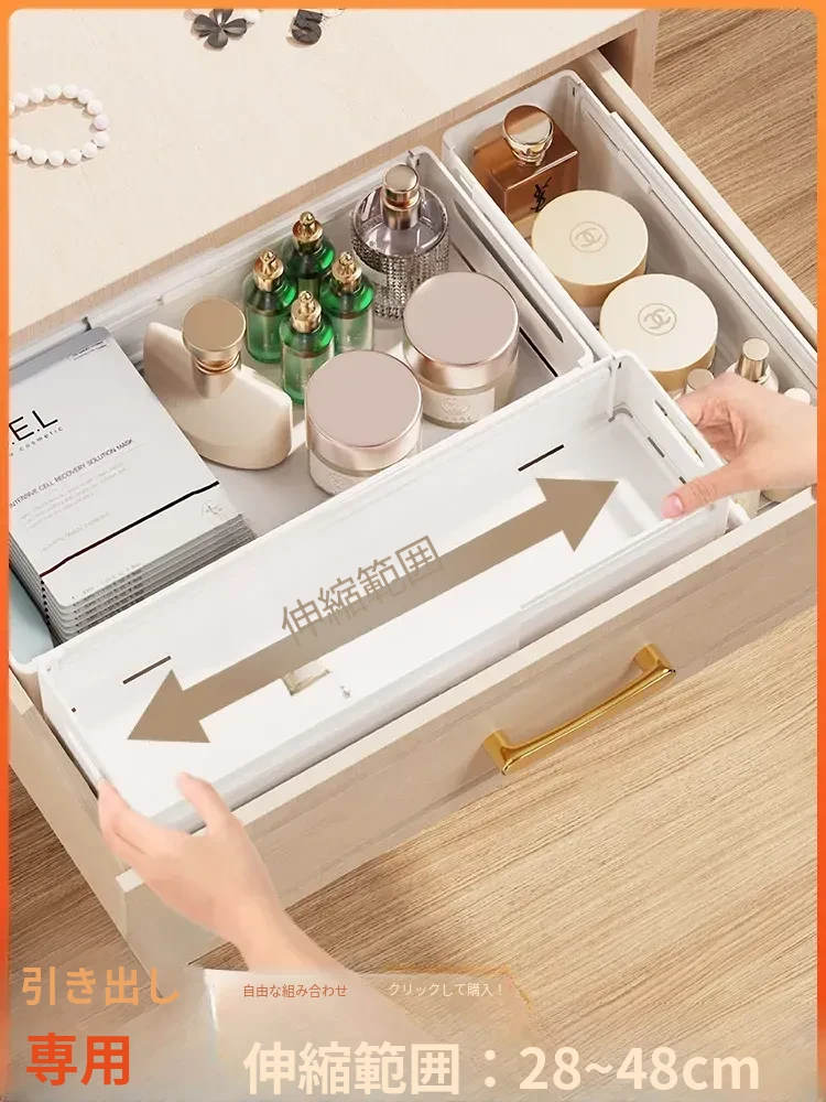 引き出し収納仕切りボックス - 化粧台内蔵のコスメ&リップ収納ボックス、伸縮可能なクローゼットやキッチン整理にも最適!おしゃれで便利な収納アイテムで、スペースを有効活用しましょう!