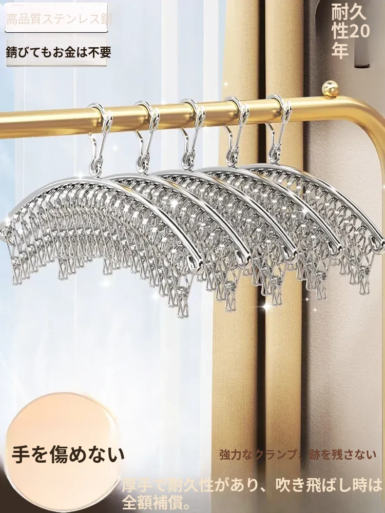風を防ぐ!ステンレス製靴下クリップ - シームレスで多機能、家庭用バルコニーでパンツや靴下を簡単に干せる便利グッズ!