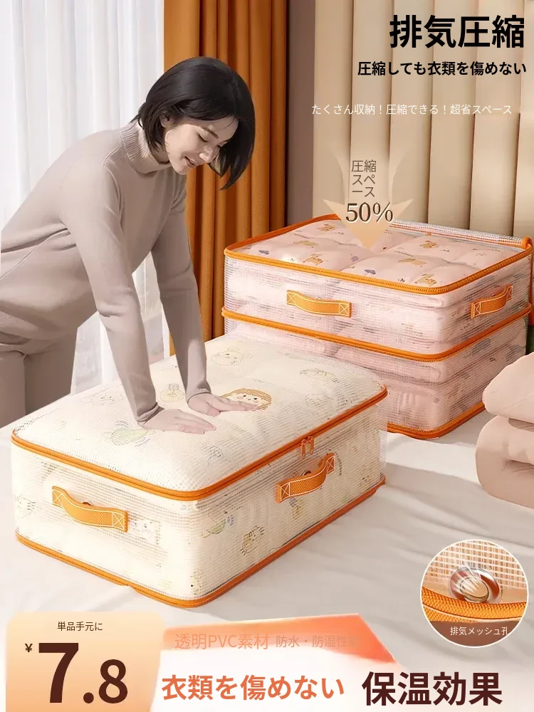 大容量収納袋|衣類・布団・ダウンジャケット専用|透明圧縮袋で引っ越しもスッキリ!整理整頓が簡単に!