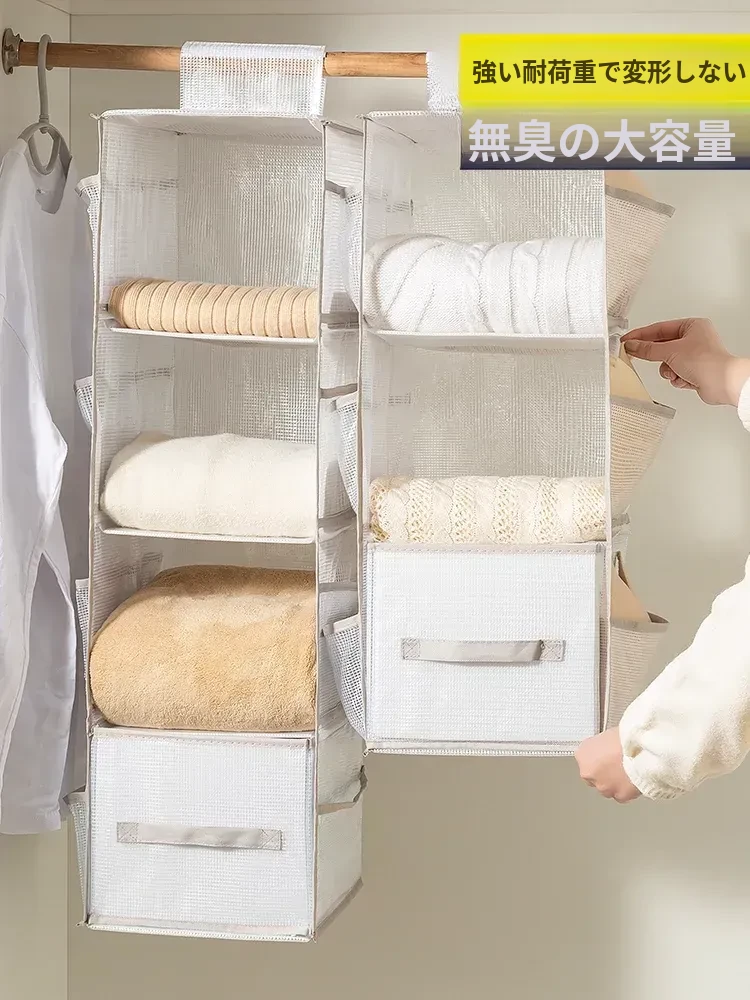 クローゼット収納ハンギングバッグ - 布製の多層収納ラックで、家や寮での下着や靴下の整理整頓を簡単に!スペースを有効活用し、すっきりとした生活空間を実現する魔法の収納アイテム!