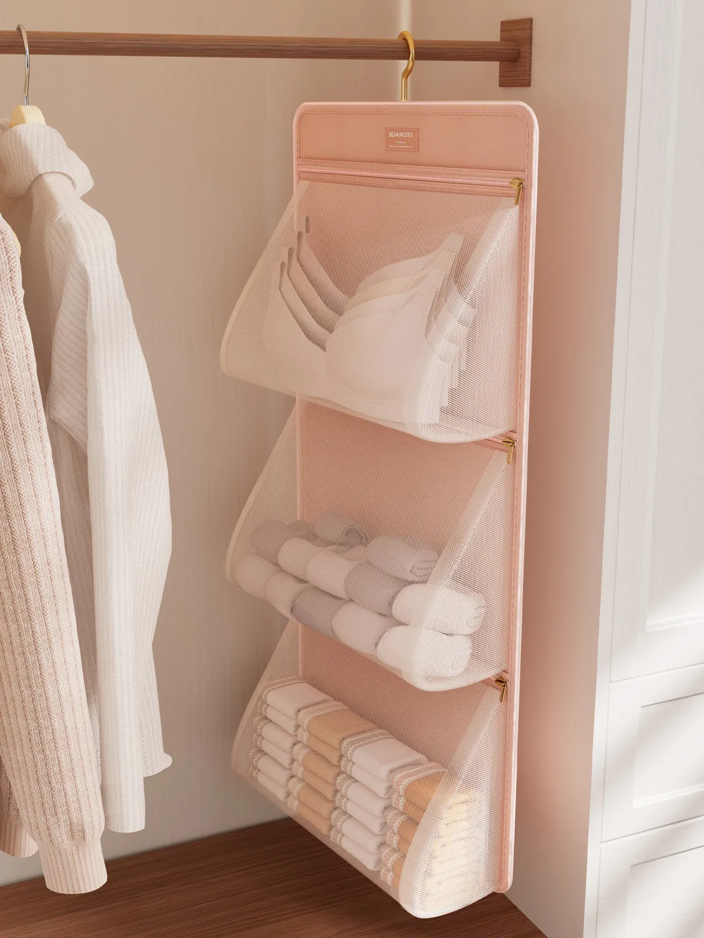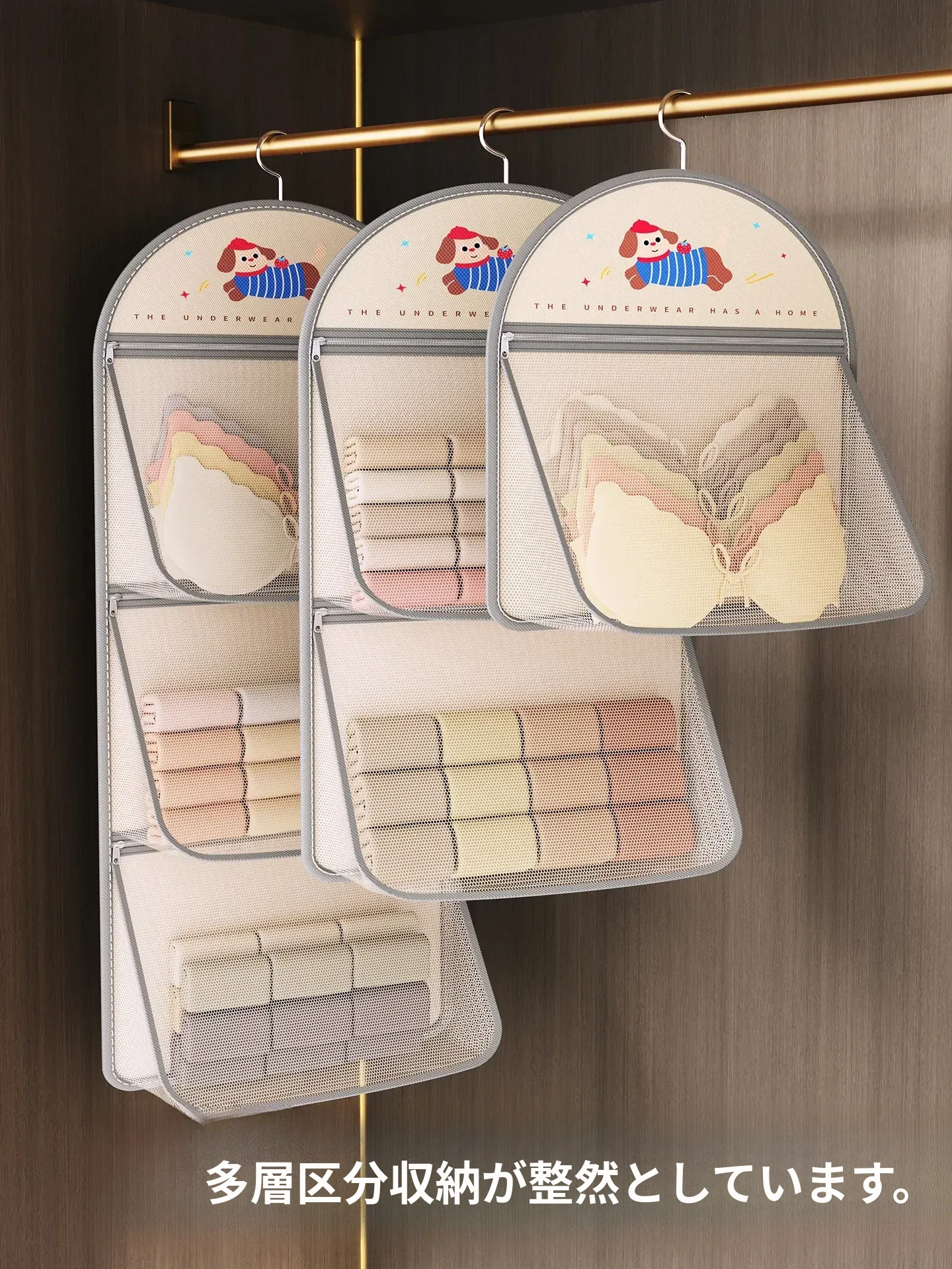 学生必見!クローゼットにぴったりなインナー収納バッグ - 下着、ブラ、靴下をスッキリ整理!寮生活をもっと快適にするハンギングネットポーチ!