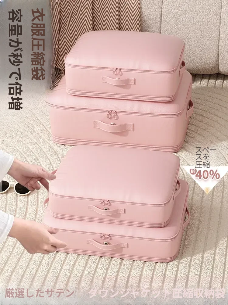 旅行に最適!圧縮収納バッグでスーツケースの衣類をスッキリ整理。ダウンジャケットもコンパクトに収納できる便利なポーチ!旅行の必需品、すっきり整理で快適な旅をサポートします。