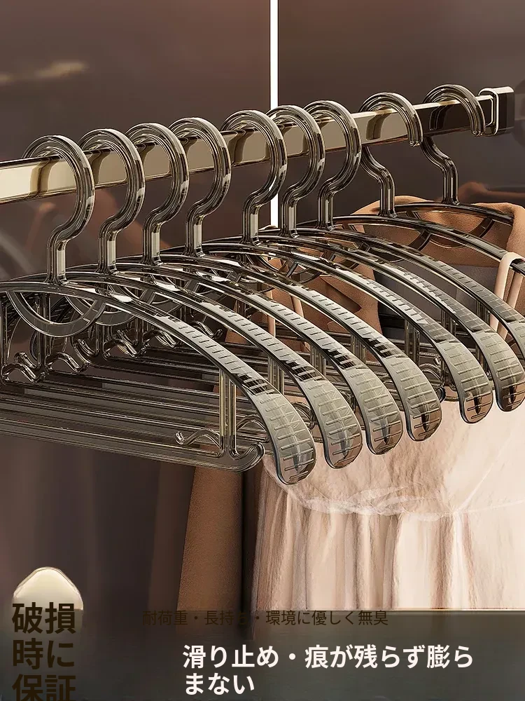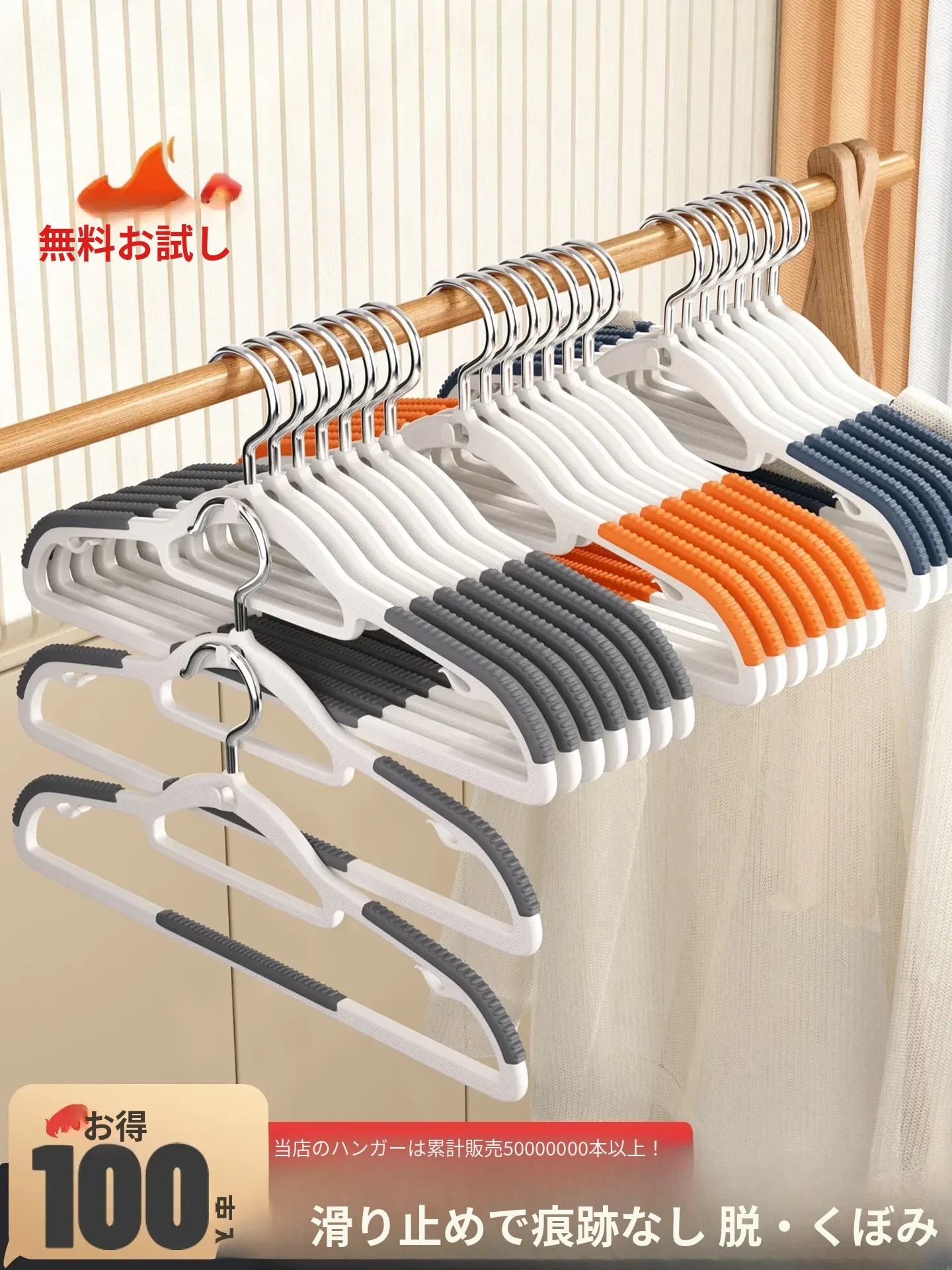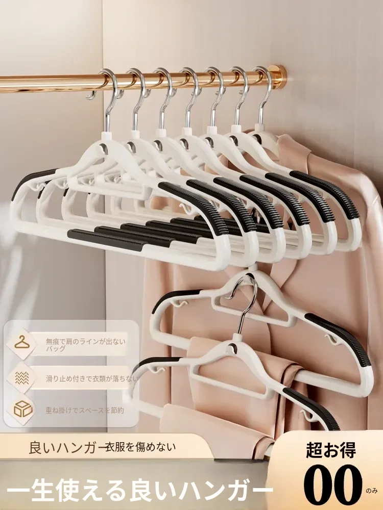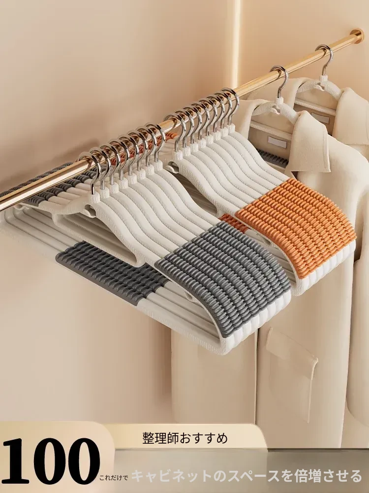 無痕滑り止めハンガー - 学生寮にぴったり!衣類をしっかり支え、肩の形を守る。大衣や軽い服も安心して干せる、便利な収納ラック!