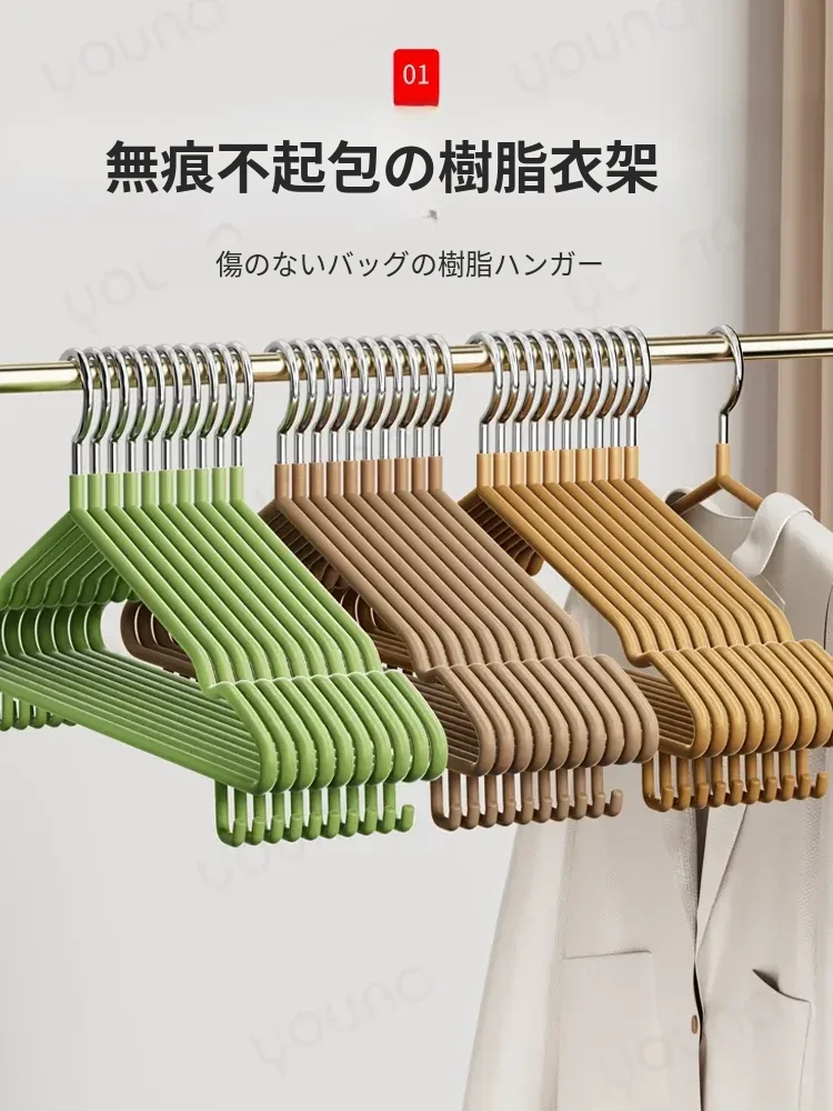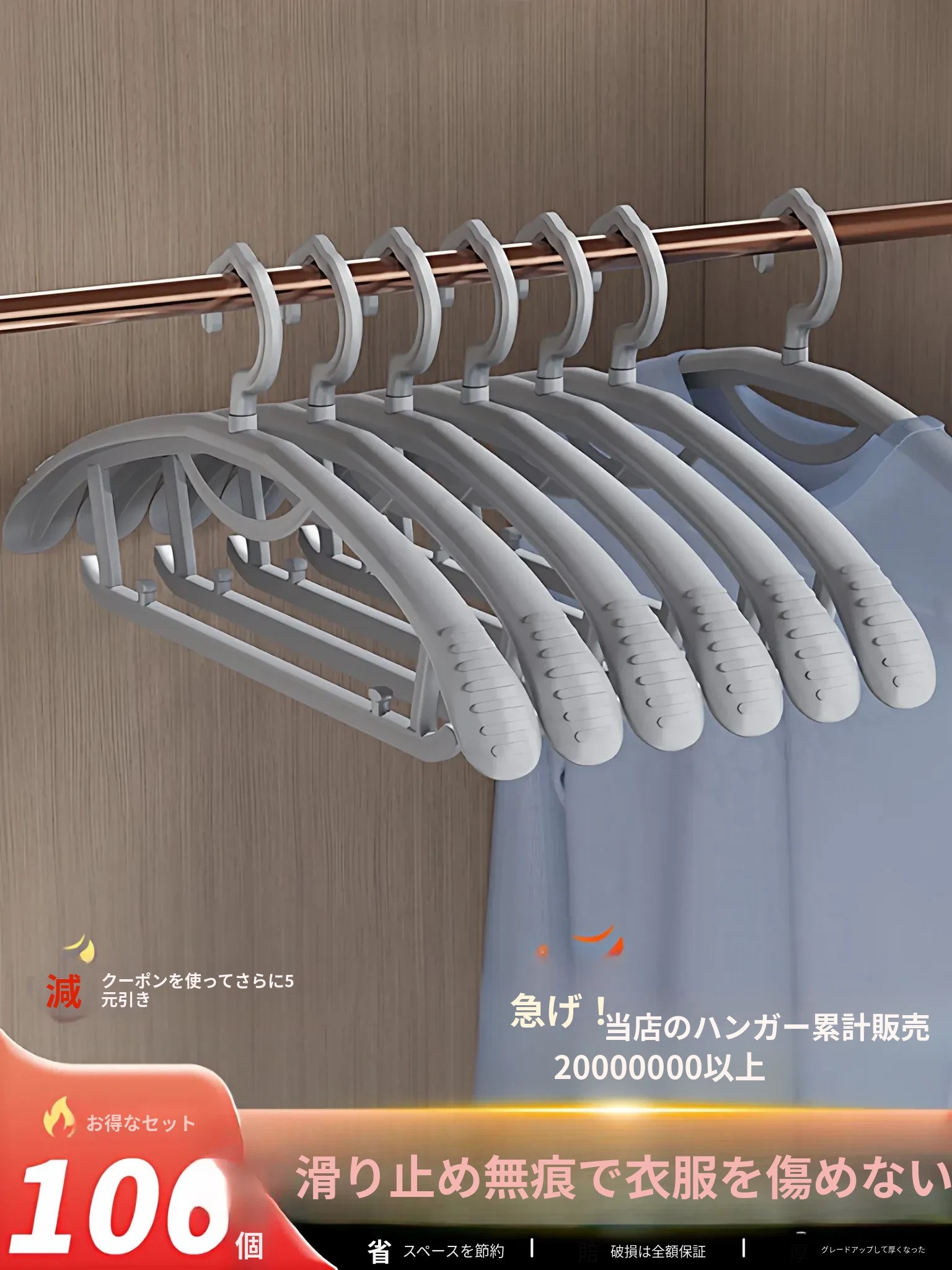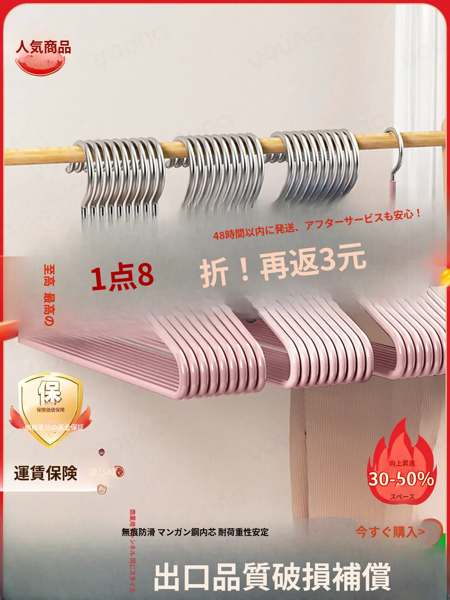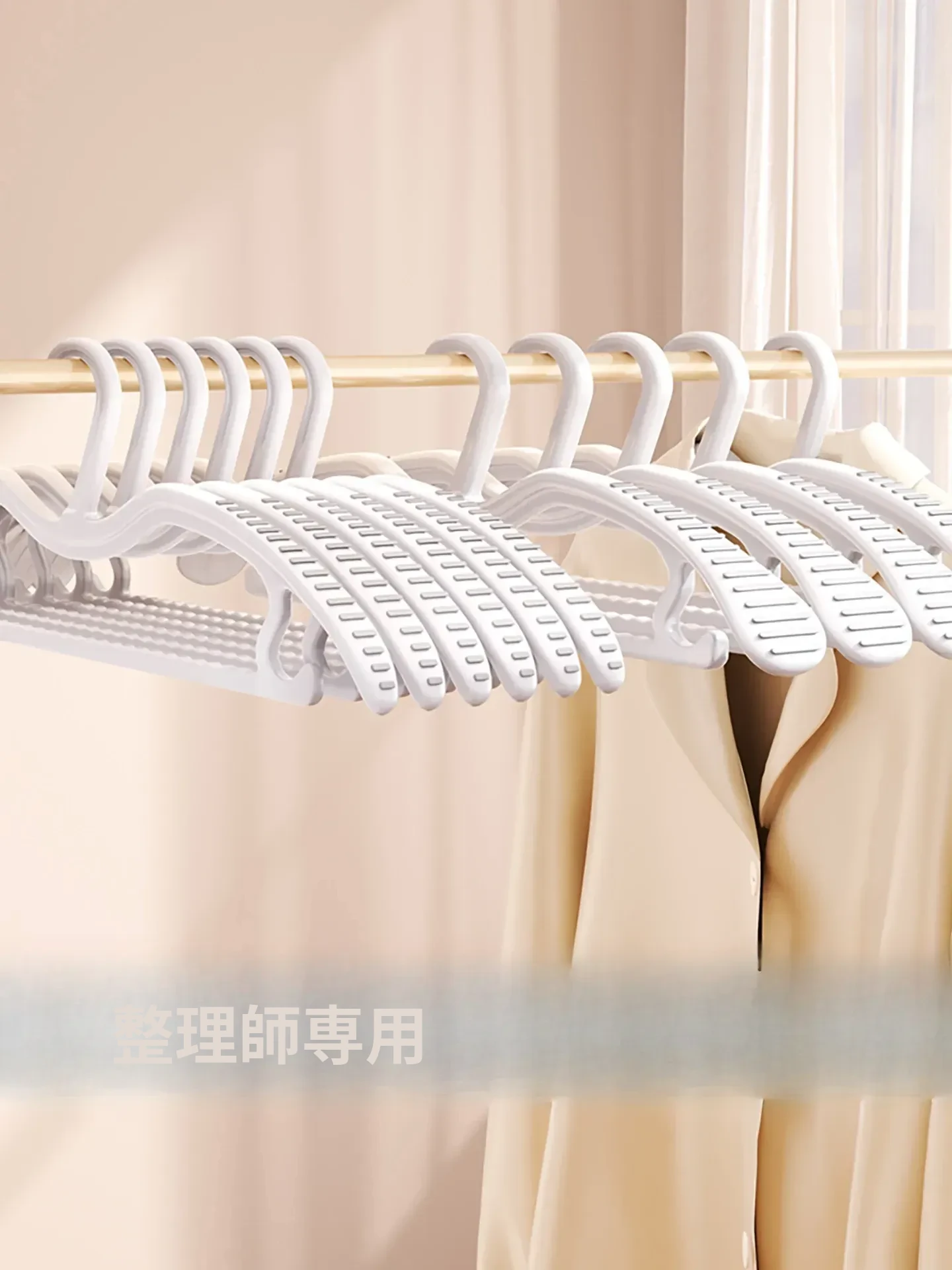無痕滑り止めハンガー - 学生寮にぴったり!衣類をしっかり支え、肩の形を守る。大衣や軽い服も安心して干せる、便利な収納ラック!