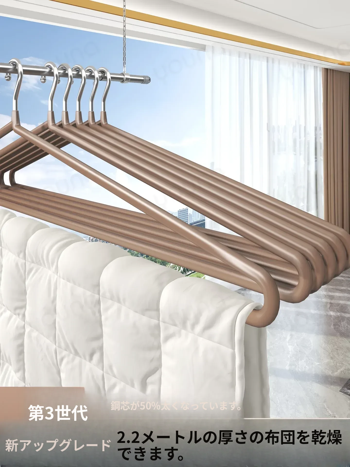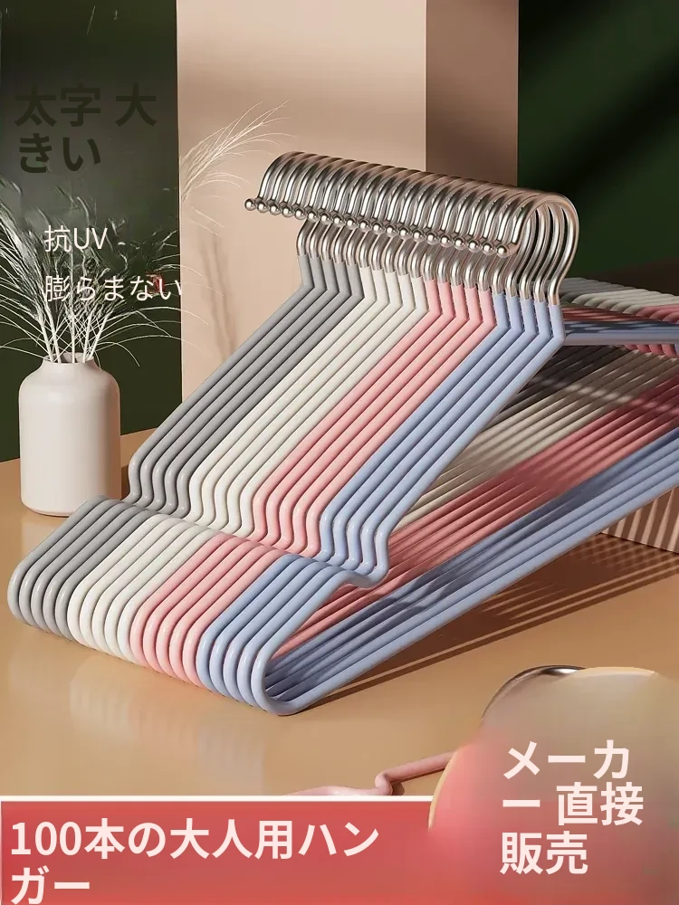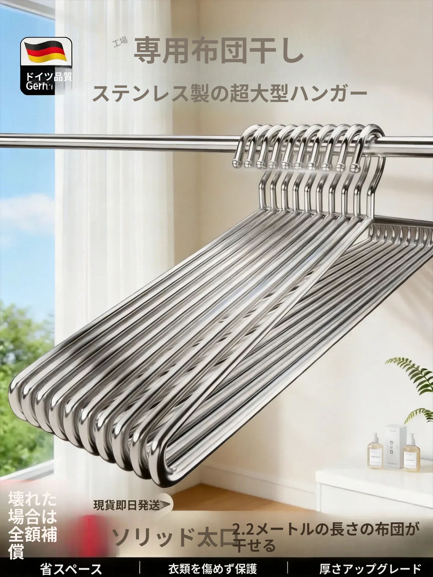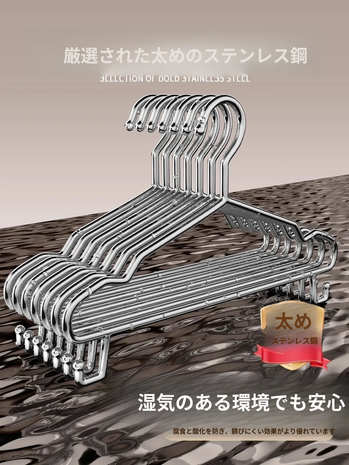 ステンレス製衣類ハンガー|家庭用・頑丈・大サイズ|学生寮やバルコニーに最適!衣類をキレイに干せる無痕タイプのハンガーです。おしゃれで耐久性抜群、収納もスッキリ!