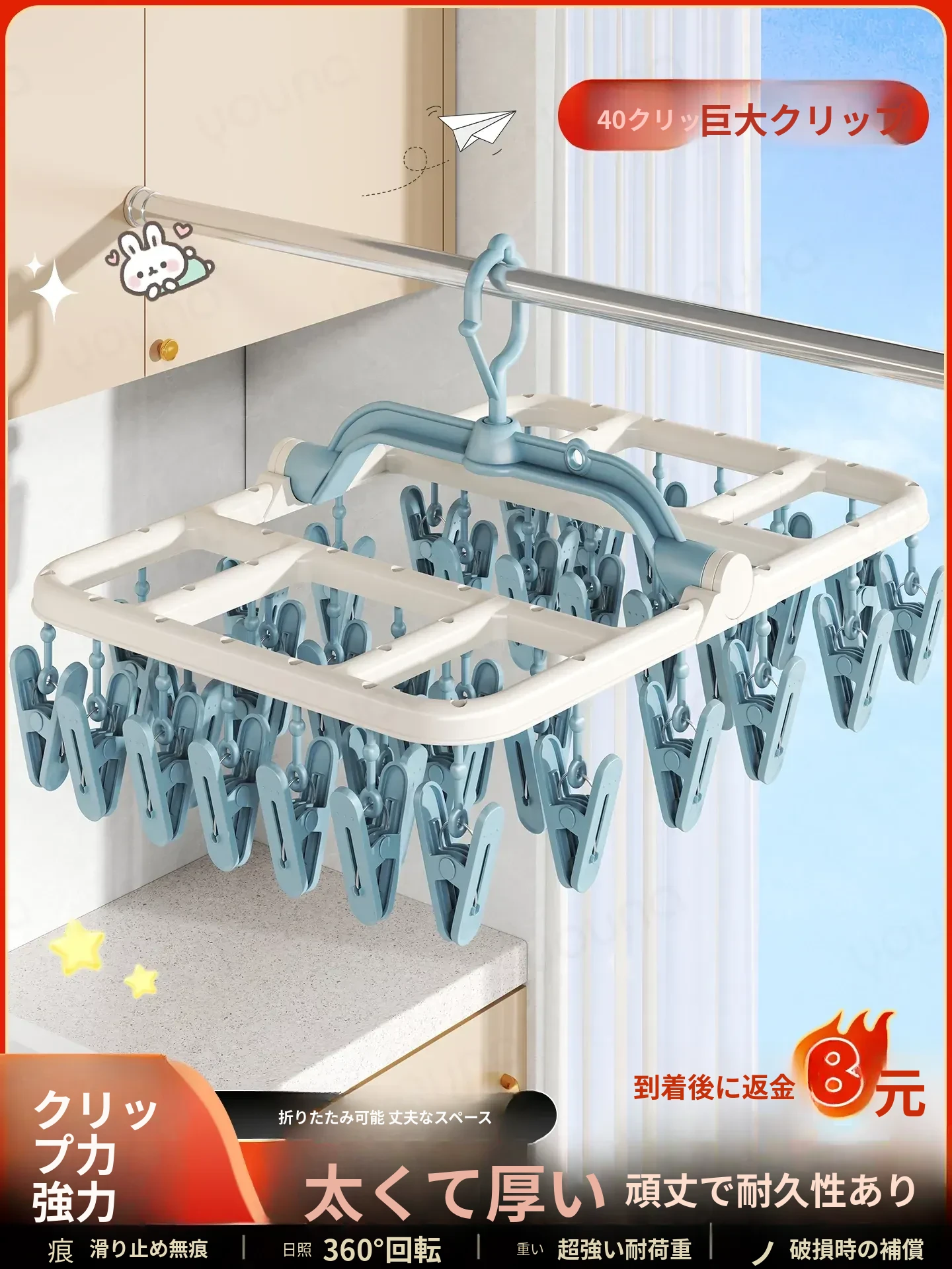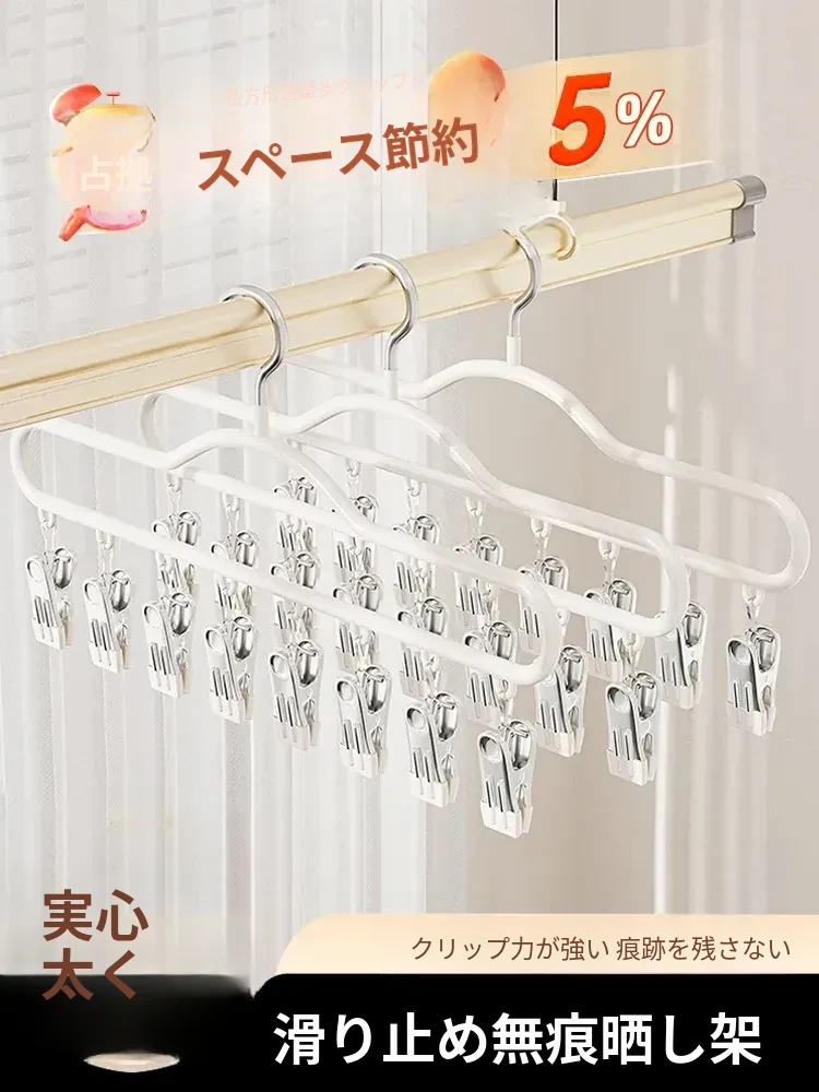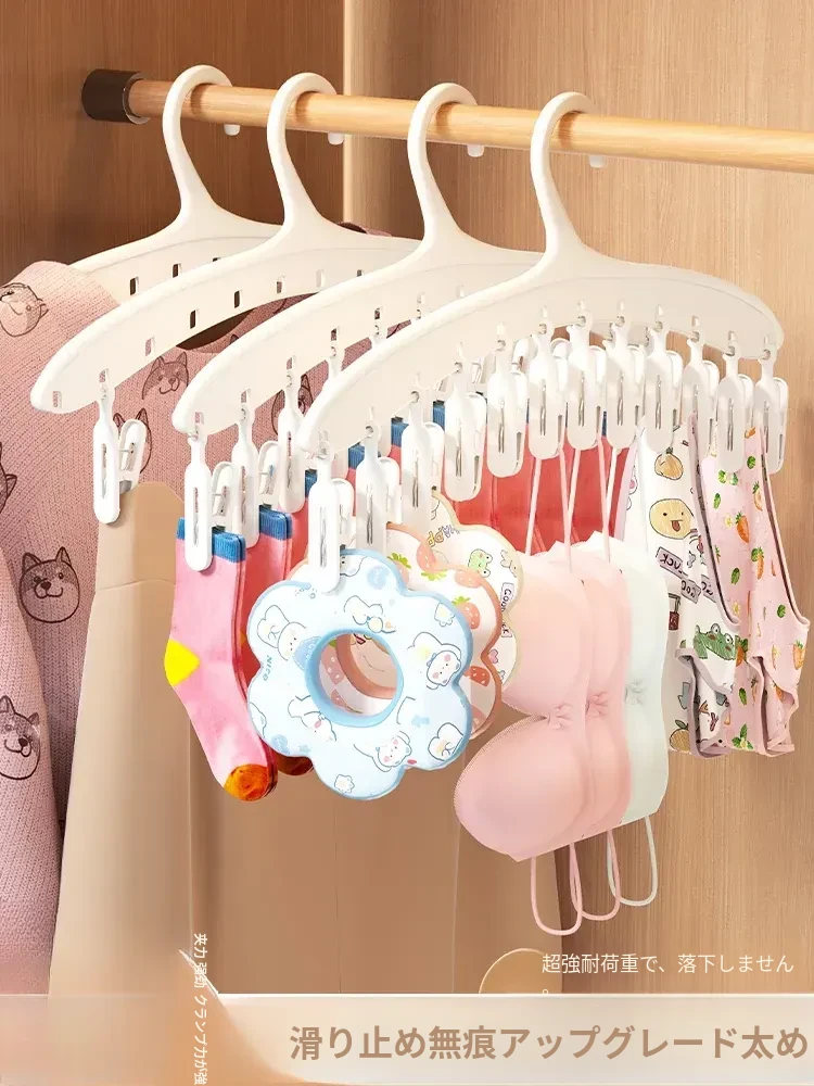 多機能ソックス&下着クリップ!寮生活に最適な洗濯ハンガー、赤ちゃん用の風防設計で安心。無痕でしっかり干せる、バルコニーでも大活躍の便利アイテム!