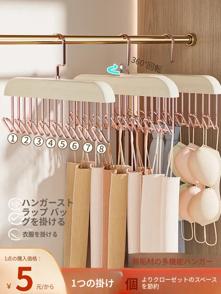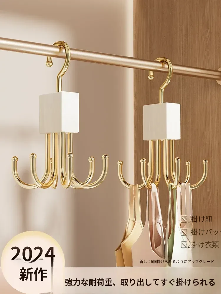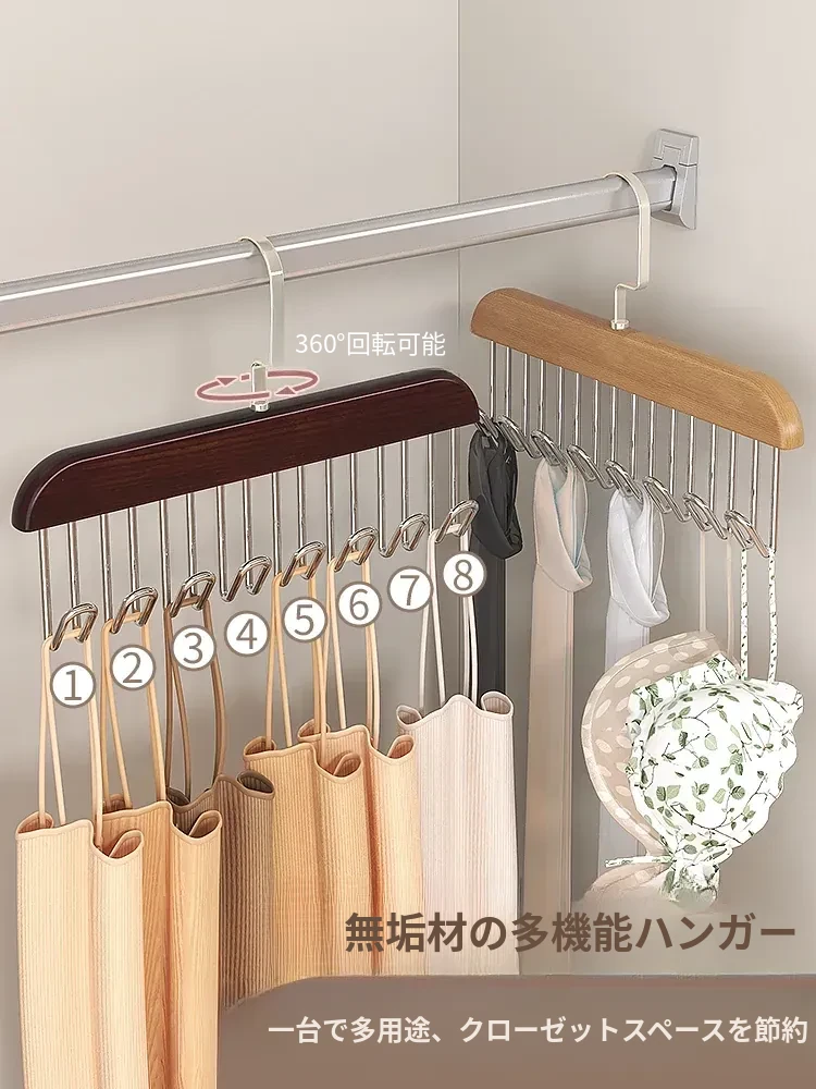 多機能木製ハンガー|寝室や家庭に最適!回転フック付きで、下着やタンクトップ、帽子もすっきり収納!おしゃれで実用的な収納の必需品!