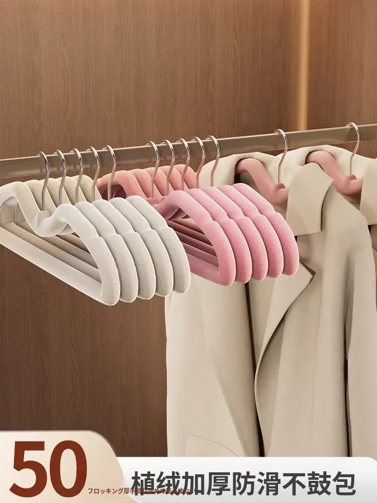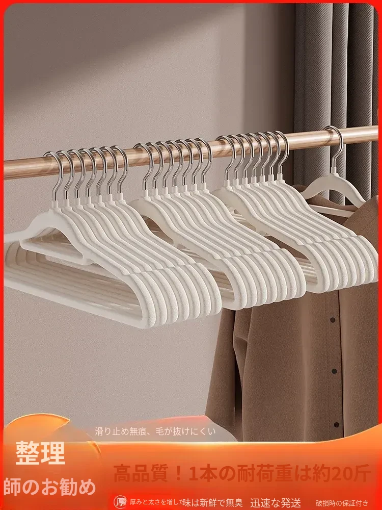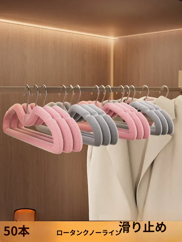 滑り止め付きフロッキングハンガー|家庭用無痕衣類掛け|収納&整理に最適|プロのスタイリストも愛用する衣類干しラック|あなたのクローゼットを美しく整えます!