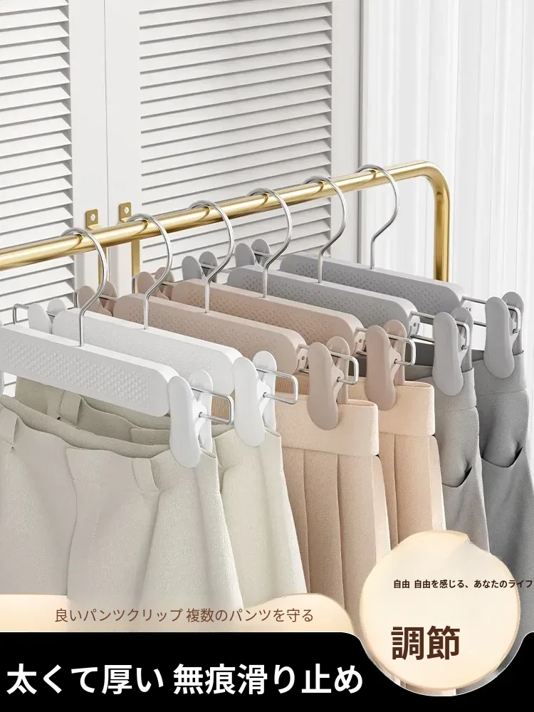 無痕防滑パンツハンガー - 家庭用多機能衣類クリップ、クローゼット整理に最適!パンツをしっかりと保持し、シワを防ぎます。おしゃれで便利な収納アイテムで、あなたのクローゼットをスッキリ整理!