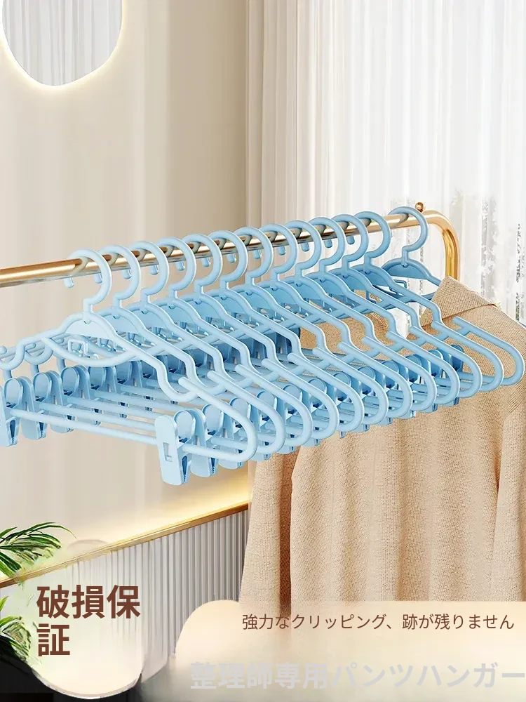 家庭用・太め・滑り止め付き・無痕パンツクリップ JK衣類ハンガー・スカート・パンツ・ショートパンツ専用 便利な干し収納グッズで衣類をスマートに整理!