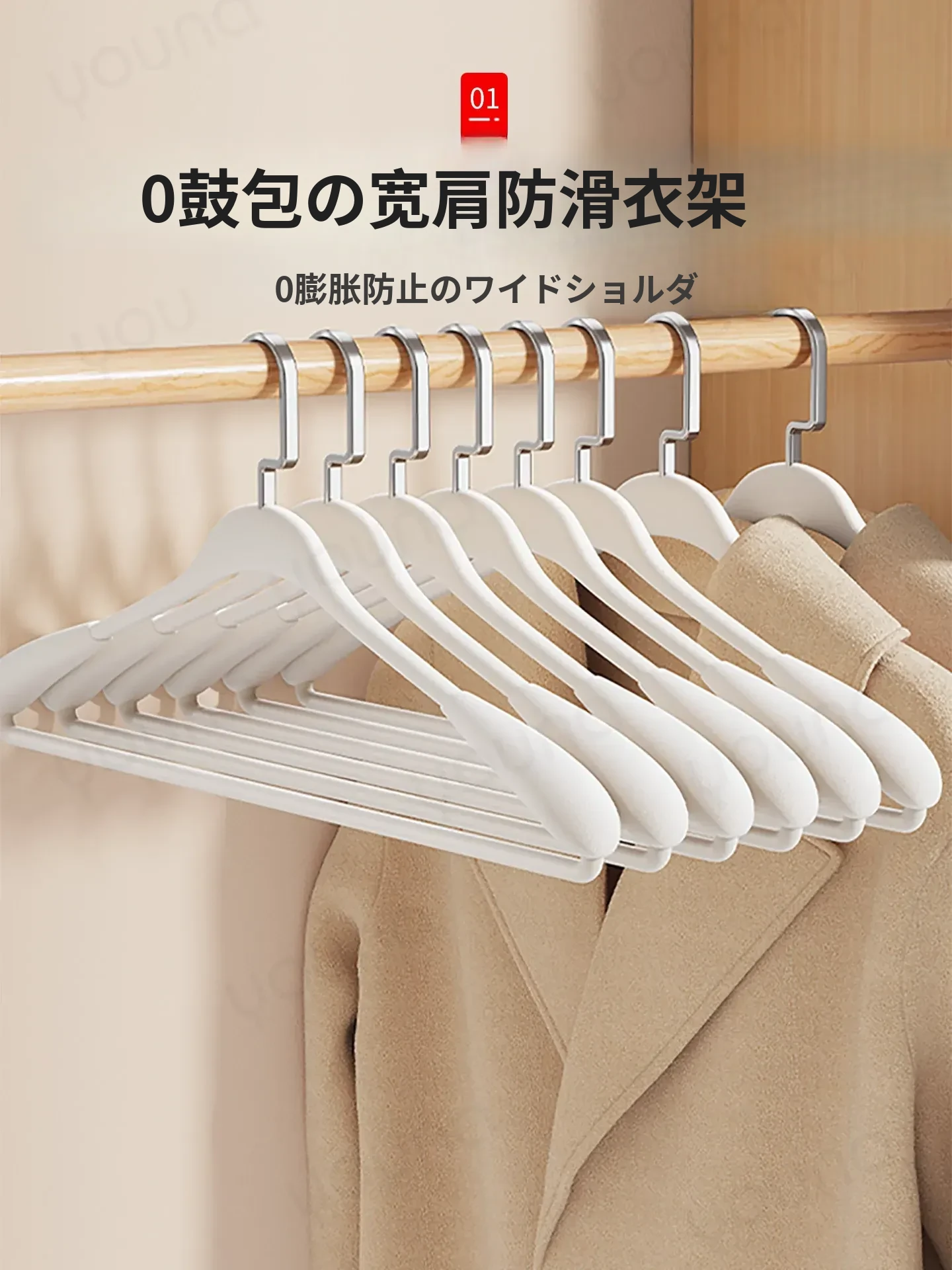 滑り止め・肩保護付きの無痕ハンガー!厚手・頑丈なデザインで衣類をしっかりサポート。家庭用に最適な掛けやすいハンガーで、衣服の型崩れを防ぎます。おしゃれで実用的な収納アイテムを今すぐ手に入れよう!