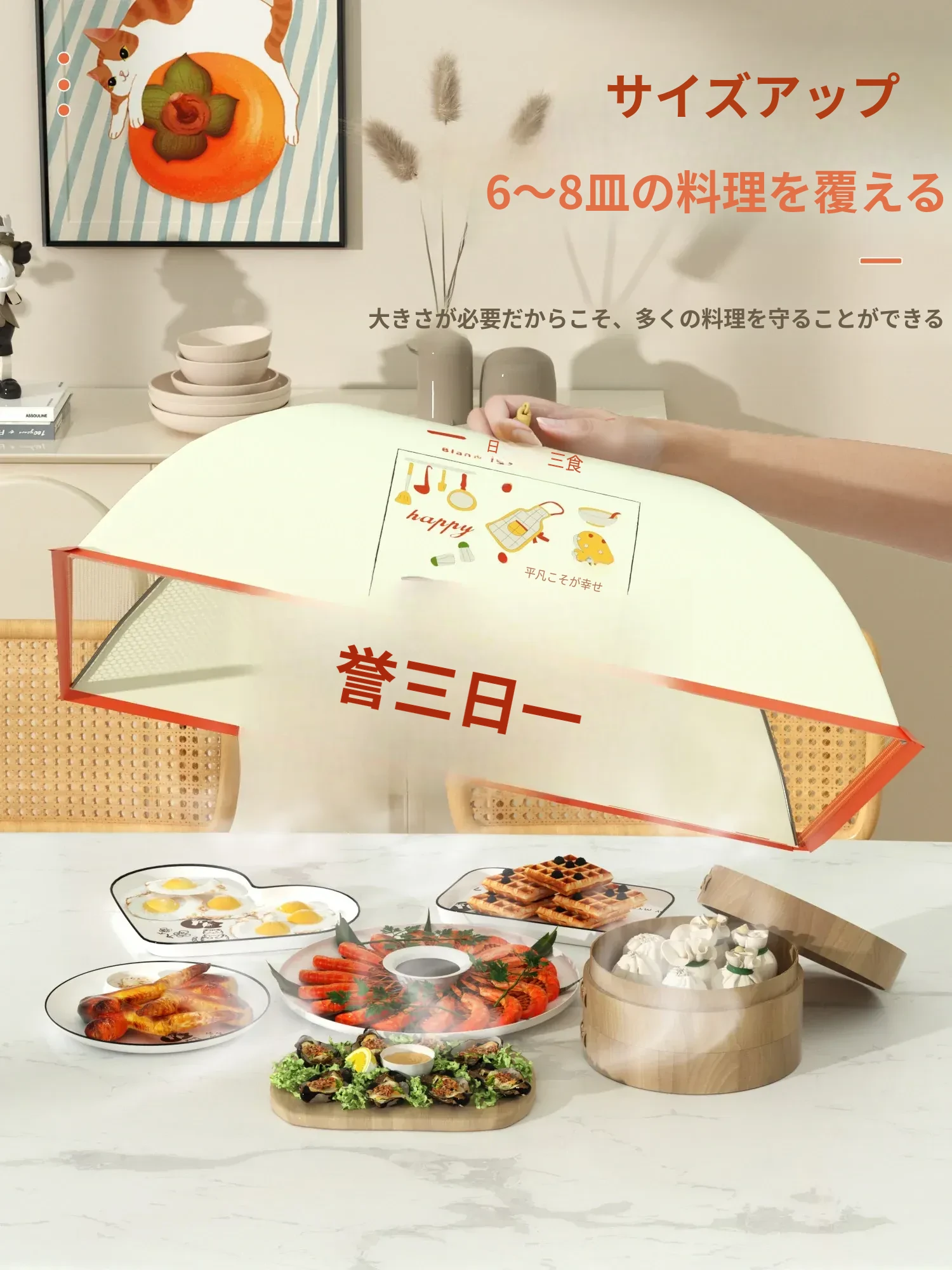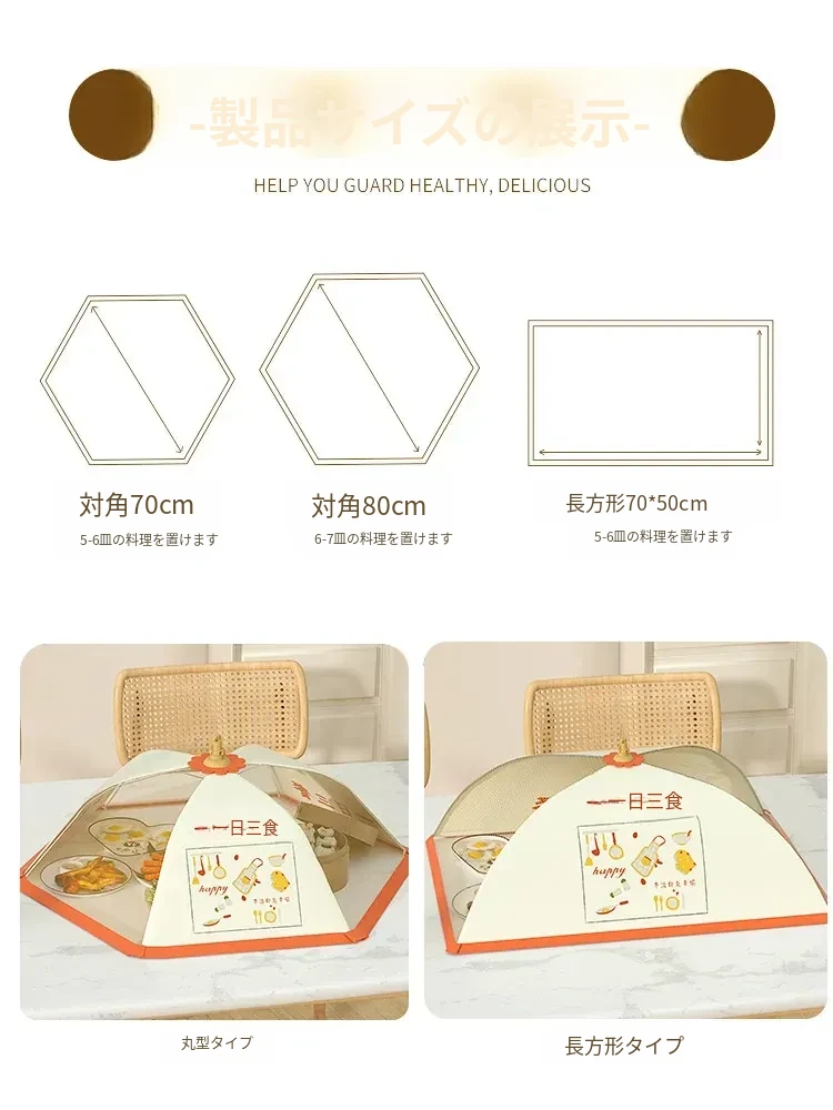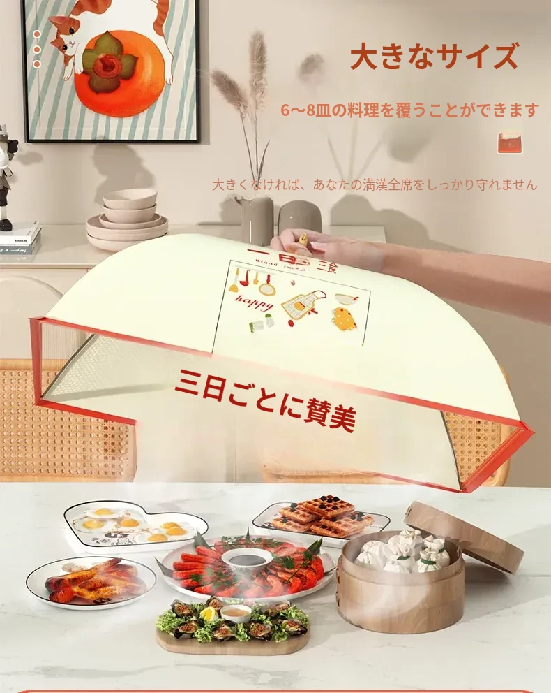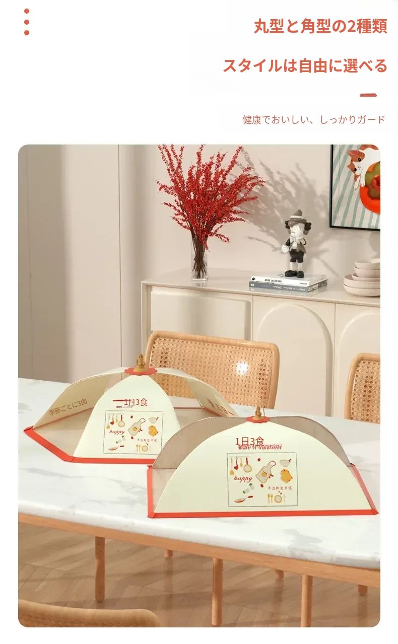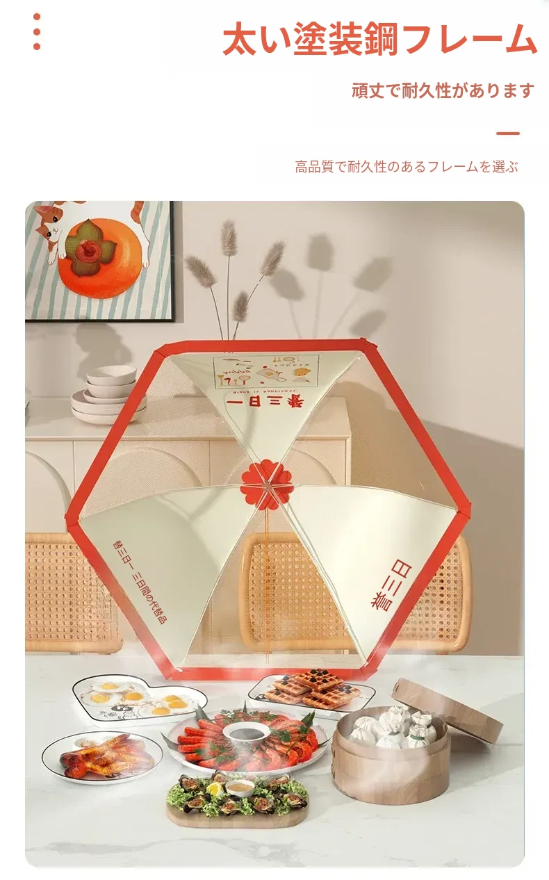 2025年新型家庭用ダイニングテーブル用食品カバー - ホコリやハエから守る折りたたみ式の食べ物カバー!残り物も美味しさそのままにキープ!