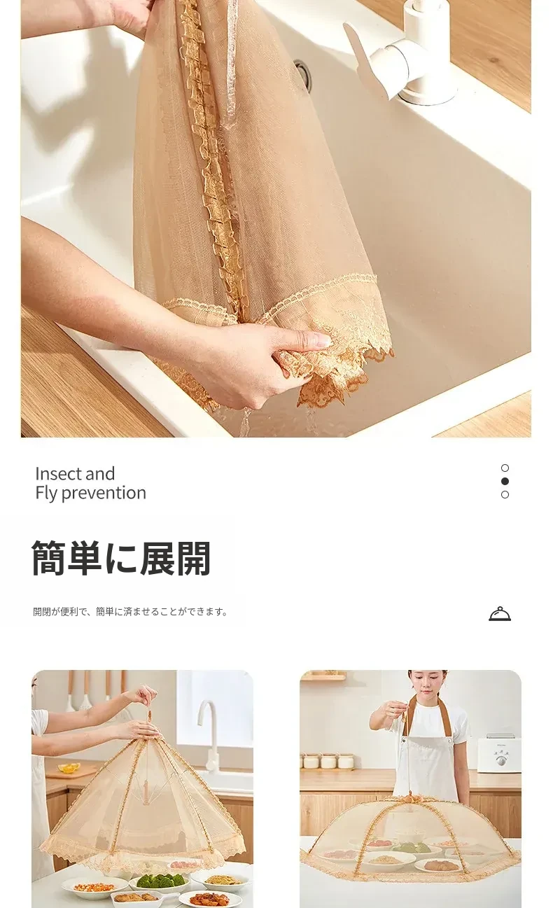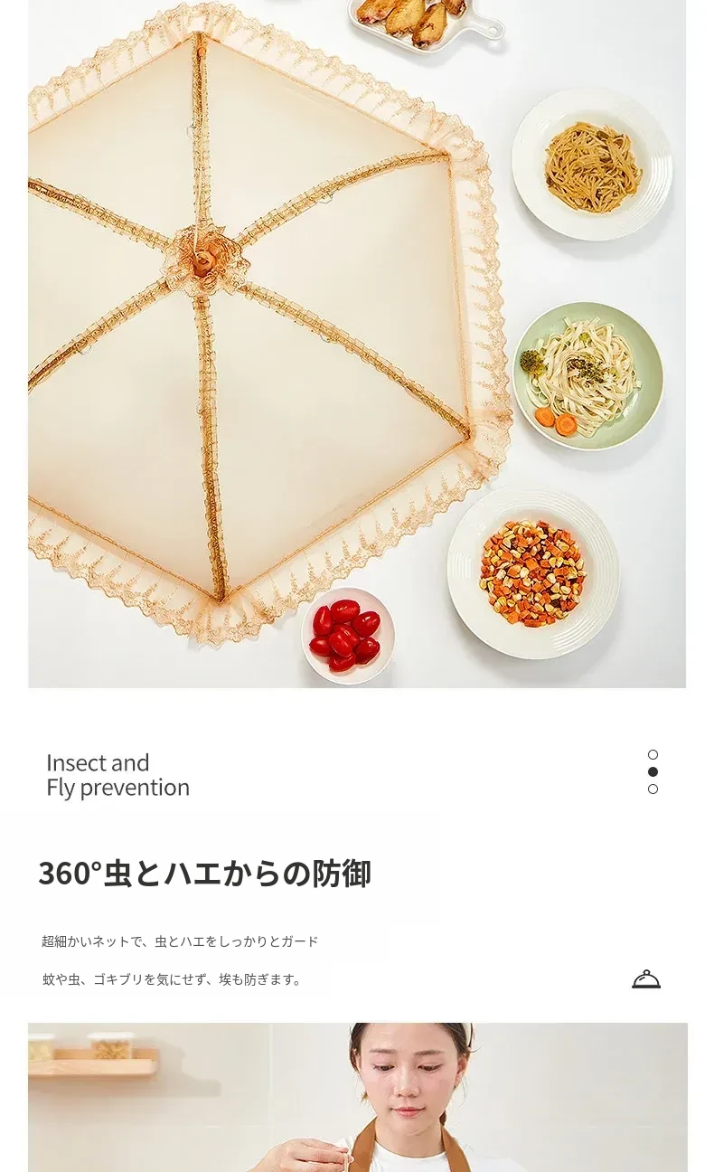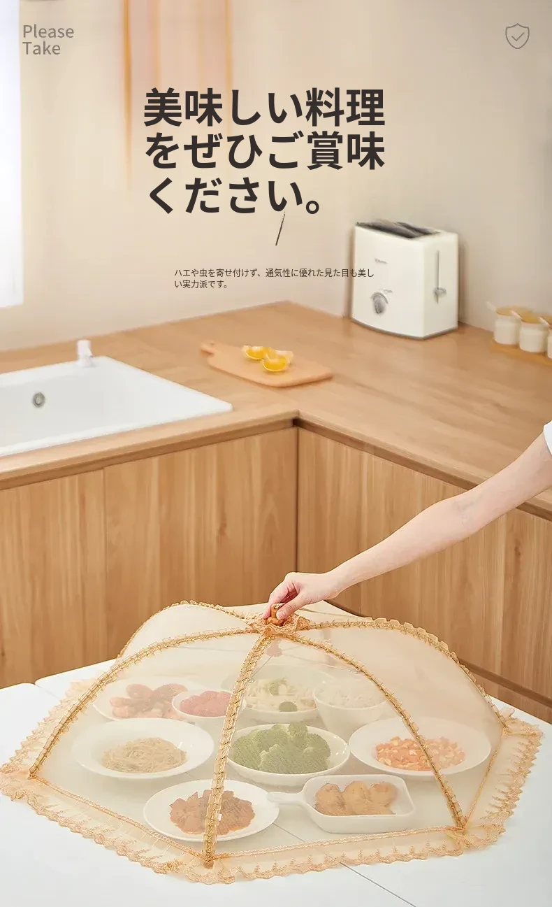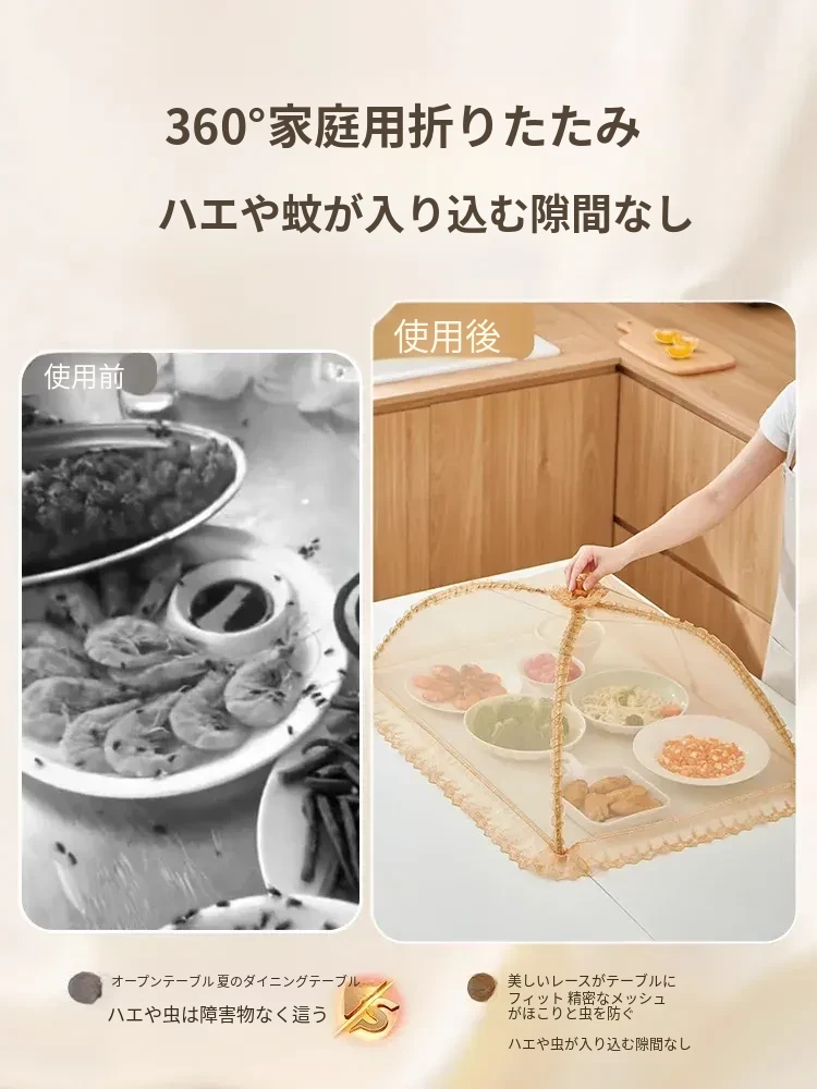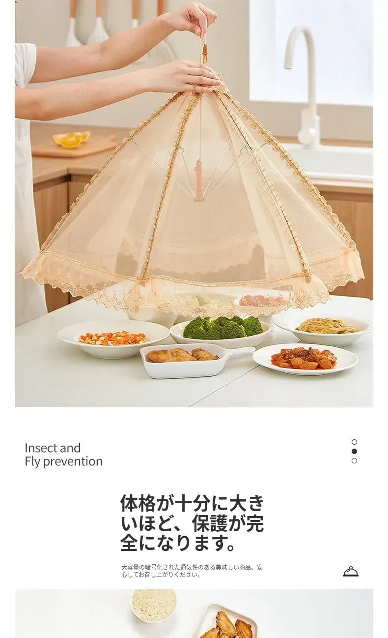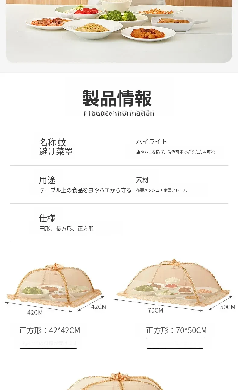 2025年新作!家庭用テーブルに最適なフライ防止カバー!食材や残り物をしっかり守る折りたたみ式カバー!便利な野菜カバーで、清潔で安心な食事を楽しもう!