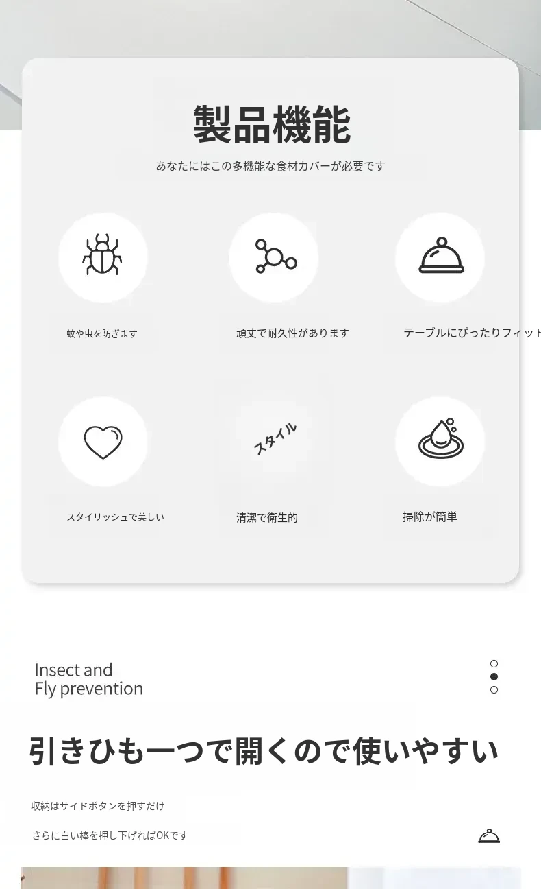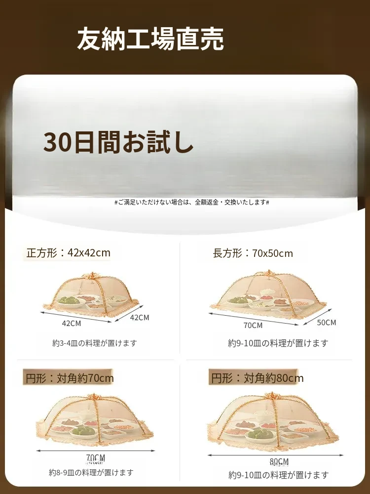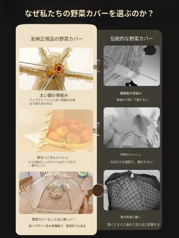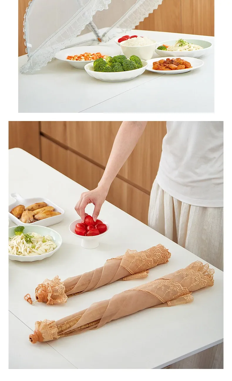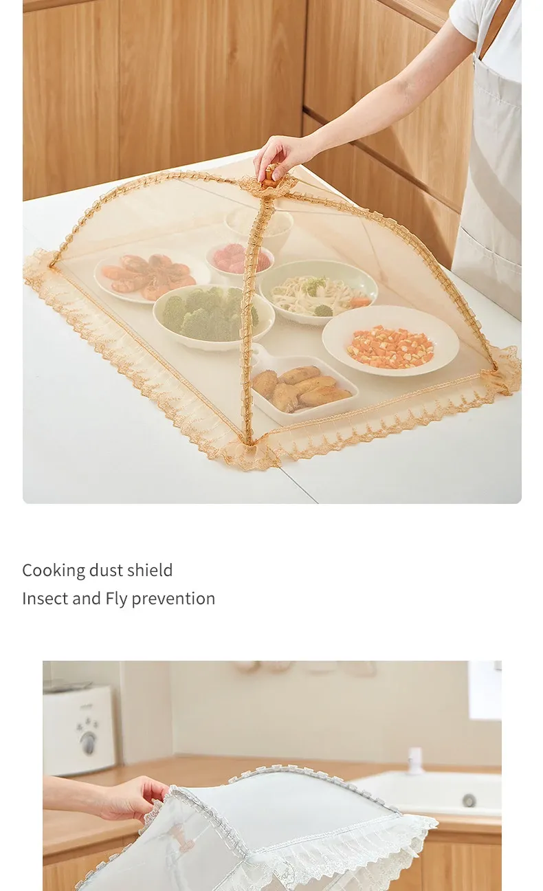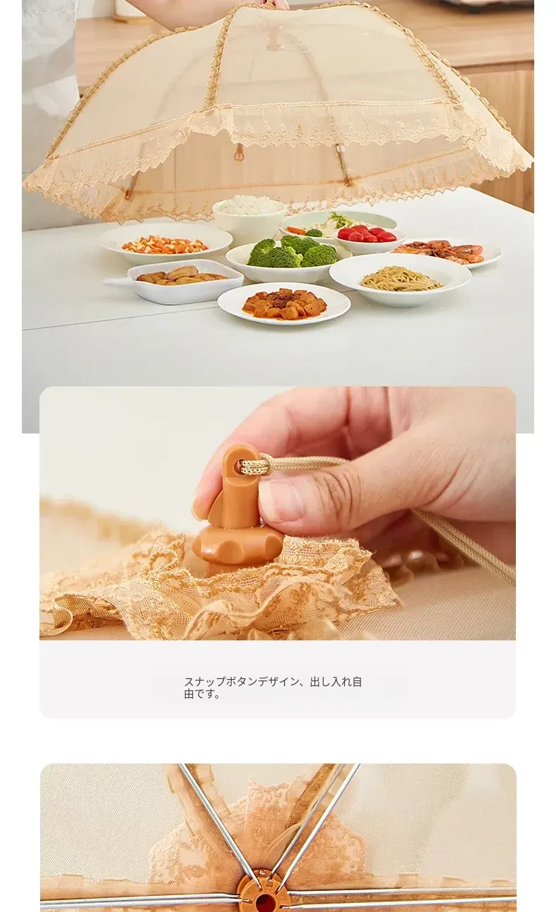 2025年新作!家庭用テーブルに最適なフライ防止カバー!食材や残り物をしっかり守る折りたたみ式カバー!便利な野菜カバーで、清潔で安心な食事を楽しもう!