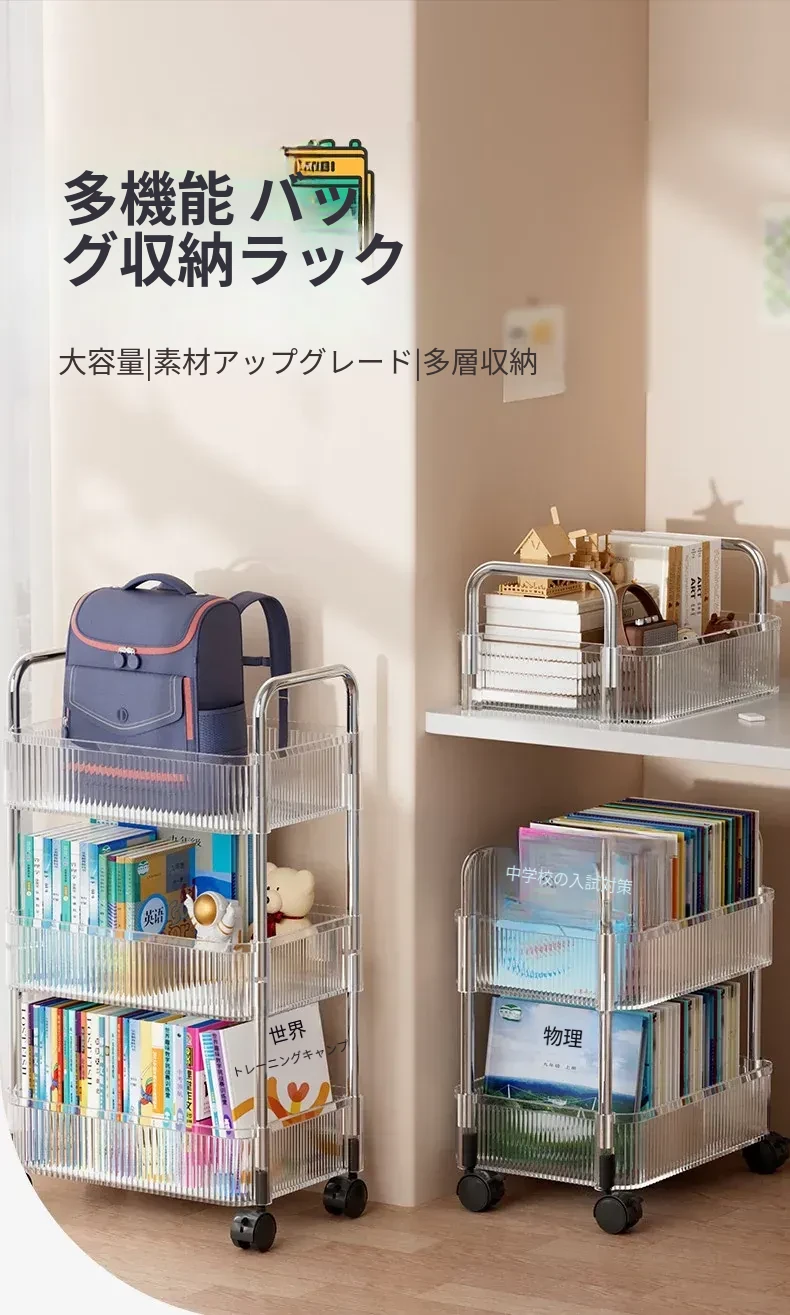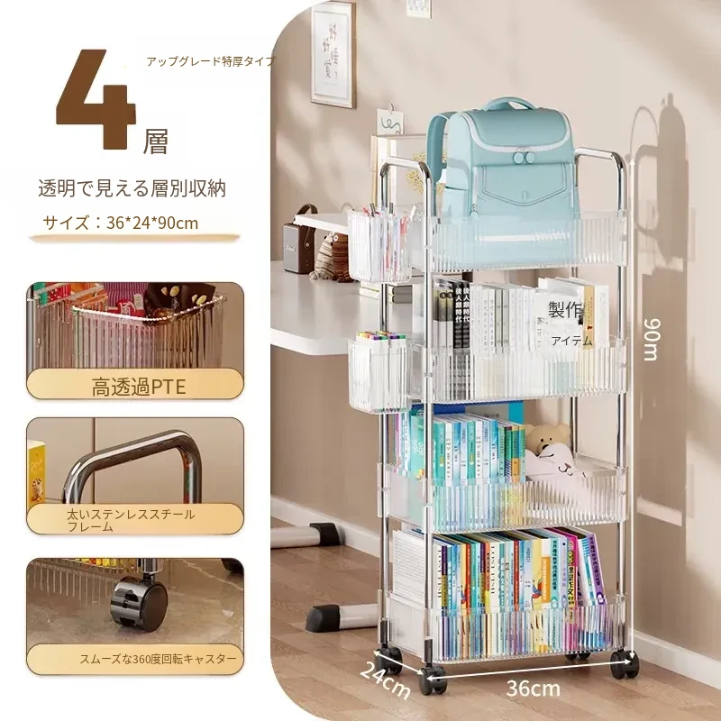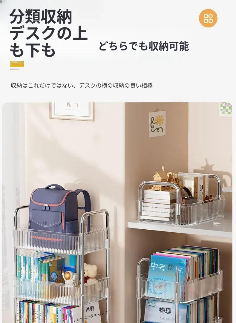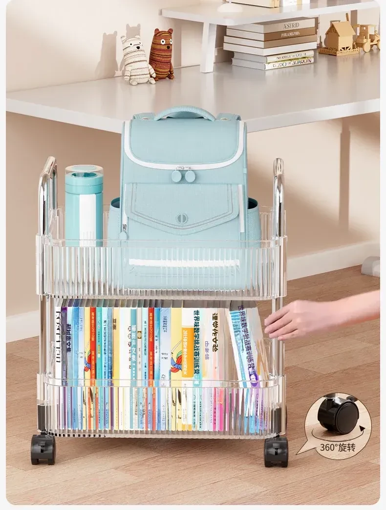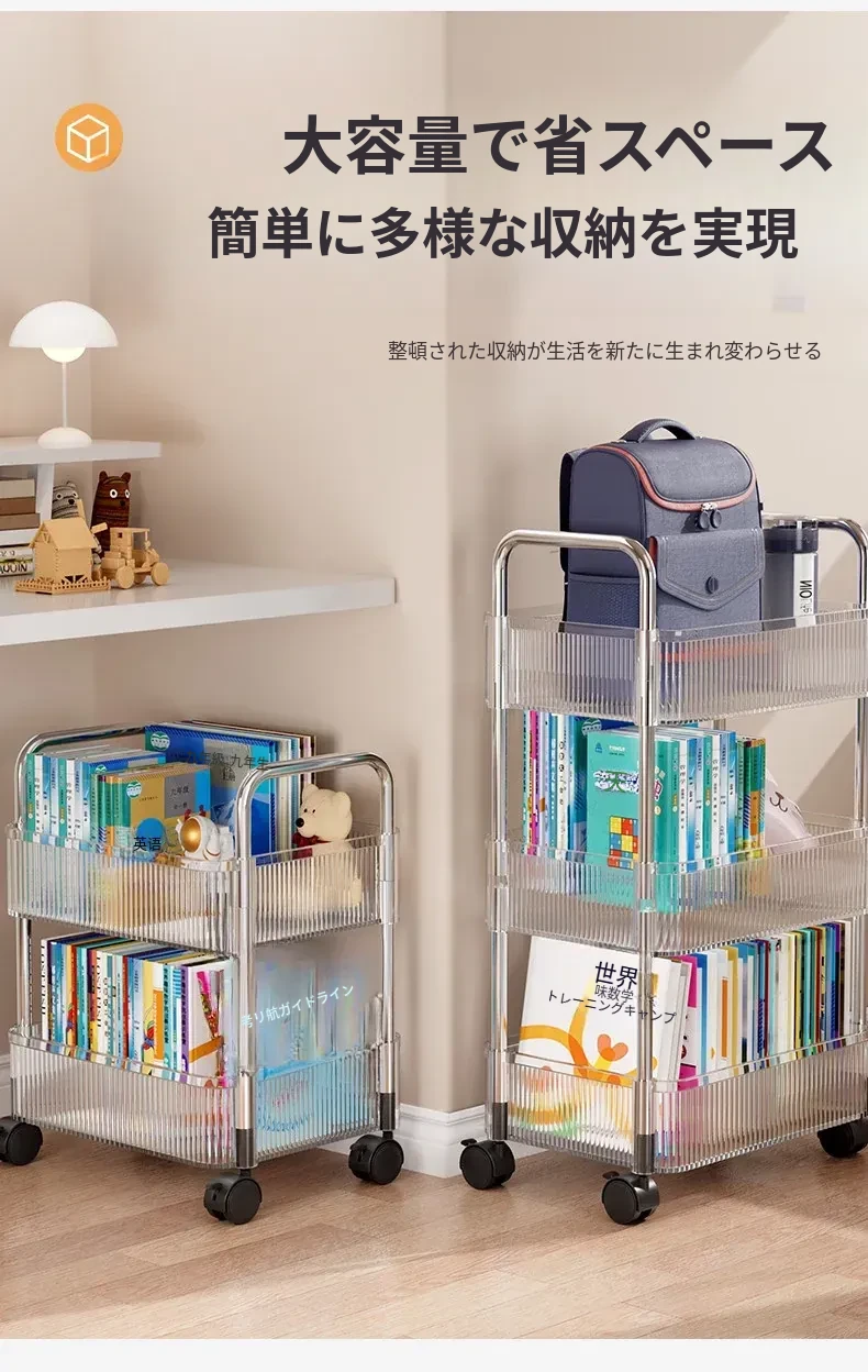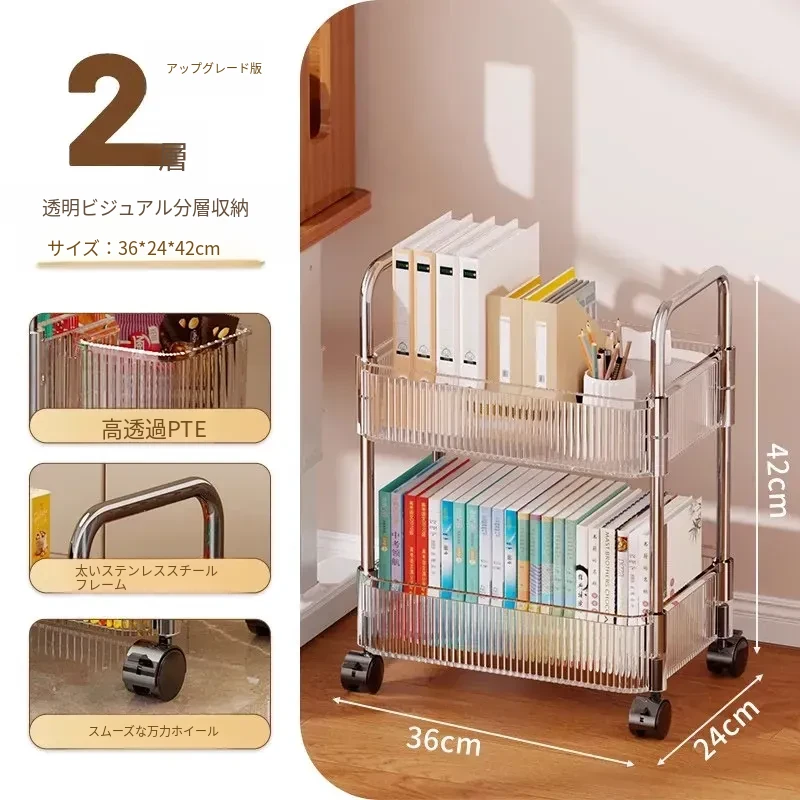 アクリル製ブックスタンド付き移動式小型ラック - 本や小物をスマートに収納!デスク下やキャビネットにぴったりの多段収納棚。家での整理整頓をお手伝いする便利アイテム!