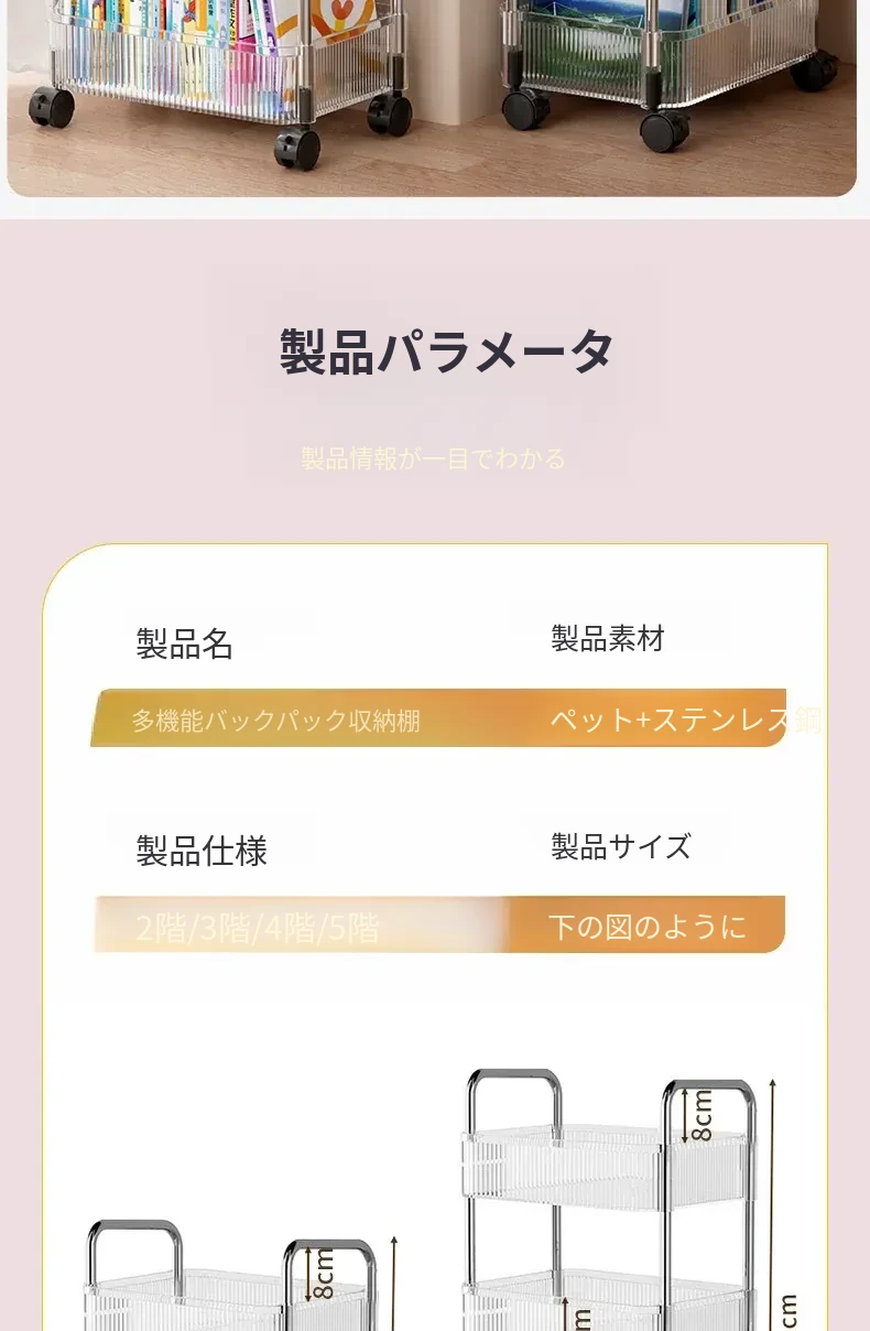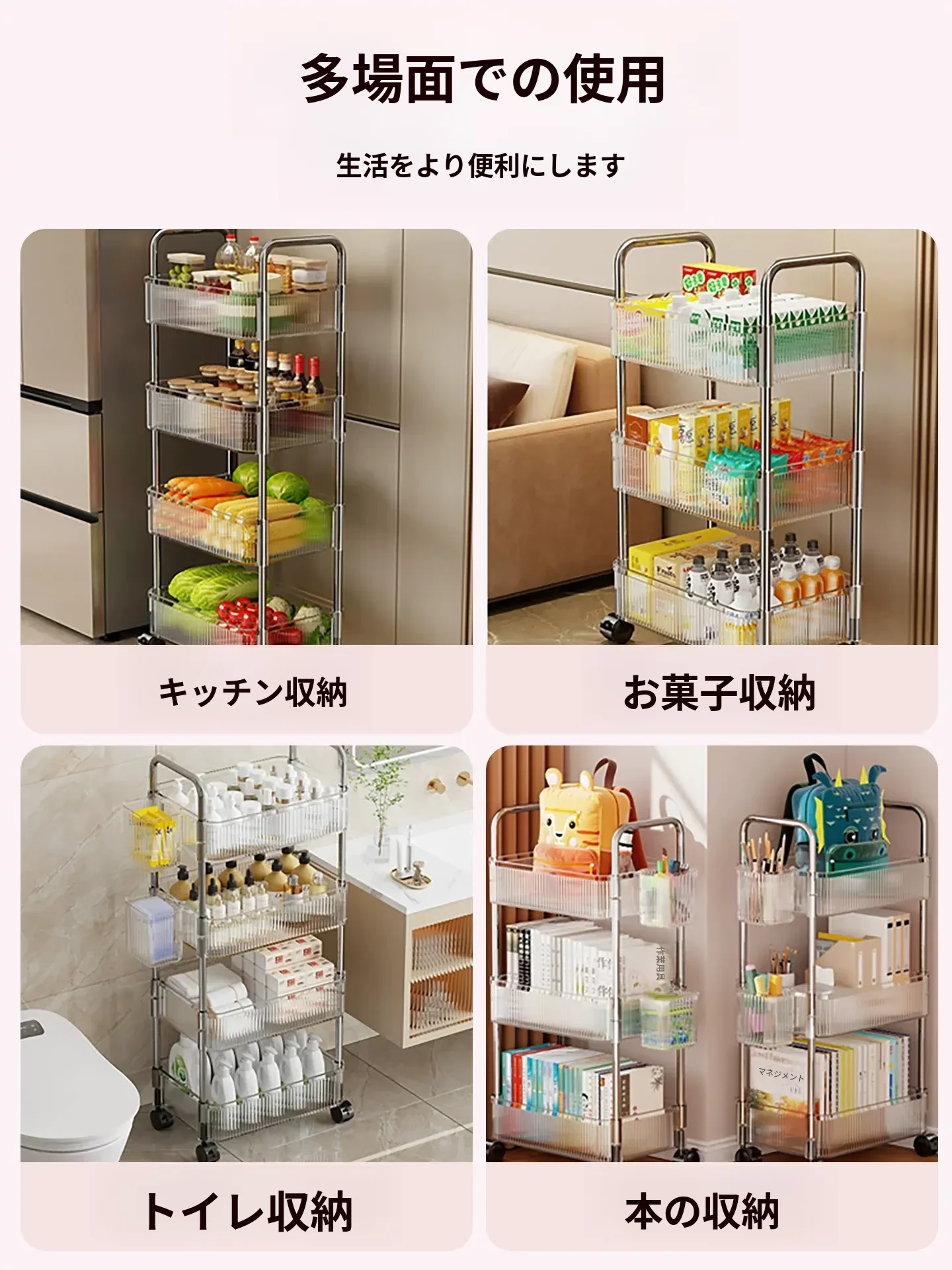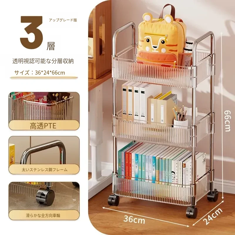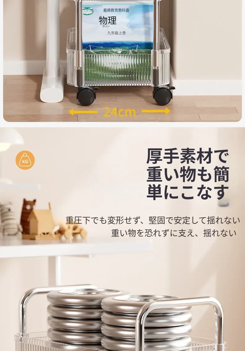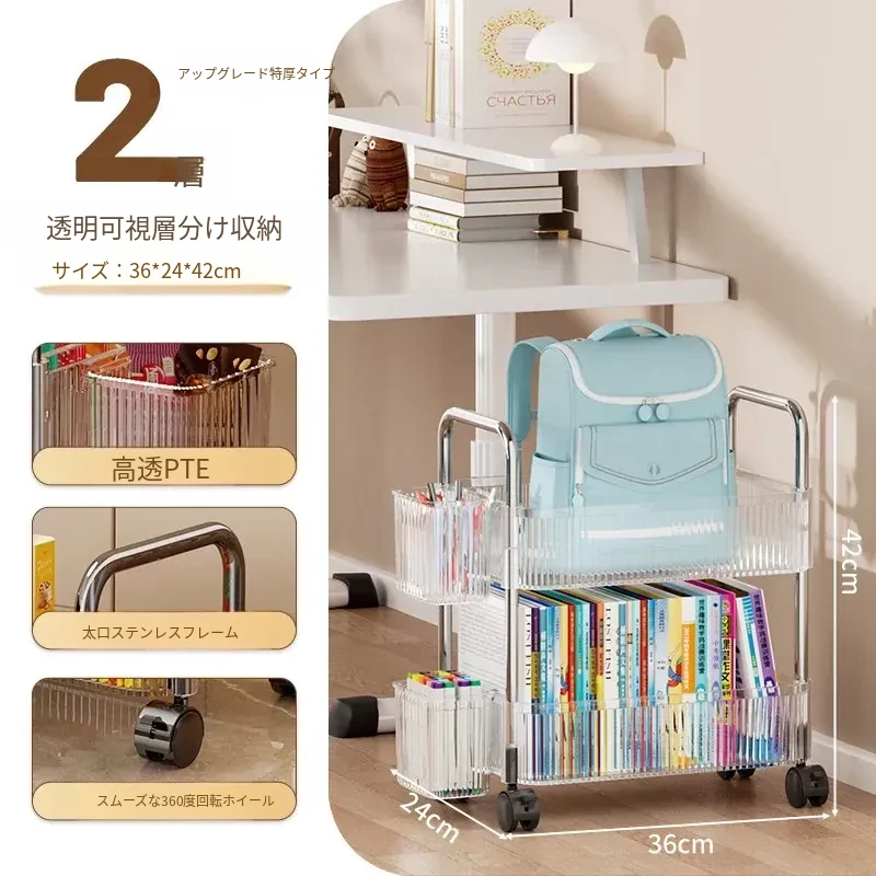 アクリル製ブックスタンド付き移動式小型ラック - 本や小物をスマートに収納!デスク下やキャビネットにぴったりの多段収納棚。家での整理整頓をお手伝いする便利アイテム!