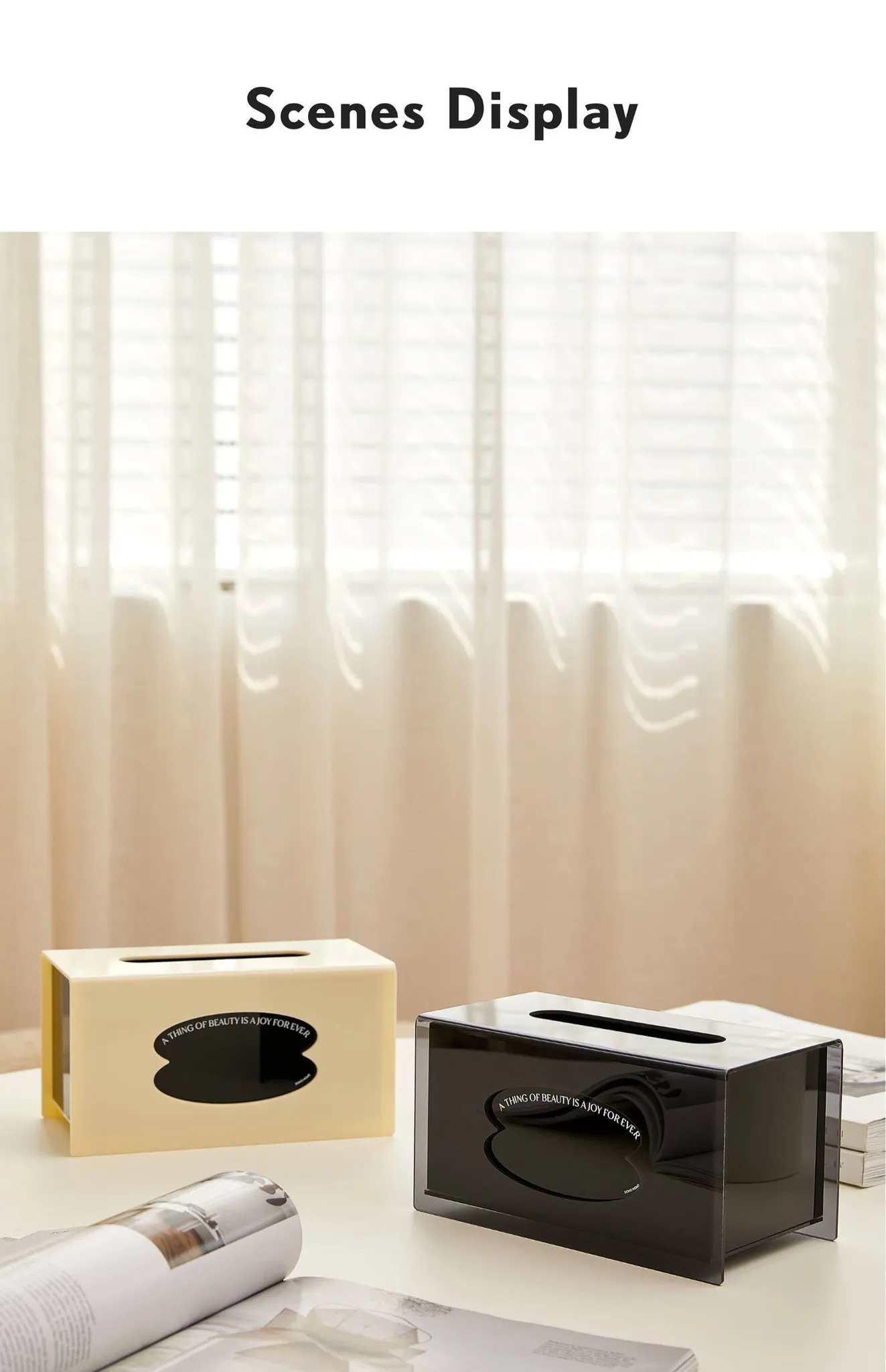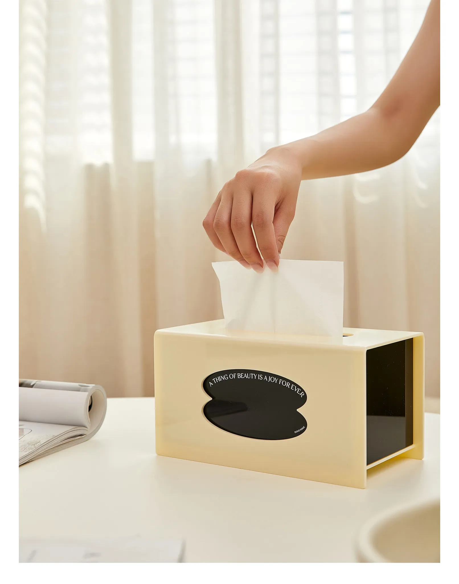 ダイニングやリビングにぴったりのクリエイティブなアクリルティッシュボックス!シンプルで高級感あふれるデザイン、インスタ映えも抜群。おしゃれな毎日を演出する、現代的な純色ティッシュケースです。