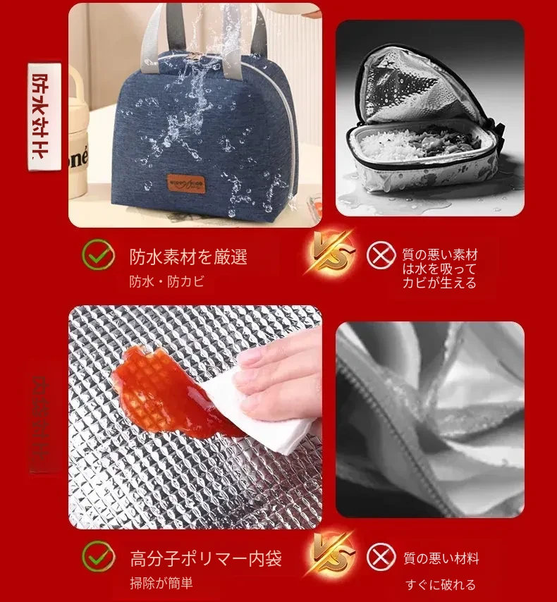 保温性抜群!厚手アルミ箔ランチバッグ - 学生や働く方に最適な持ち運び便利なオックスフォード布製お弁当袋!ランチを美味しく温かく保ちます!