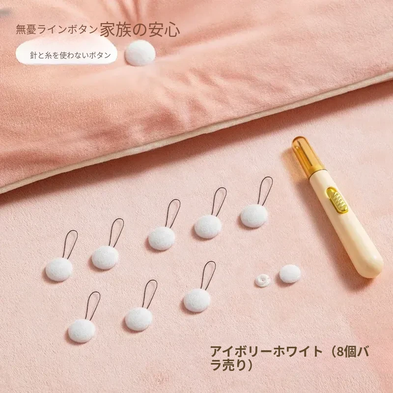 アイボリーホワイト-8個装【両面フリース留め具/薄さ厚さ共用】取り付けツール付き