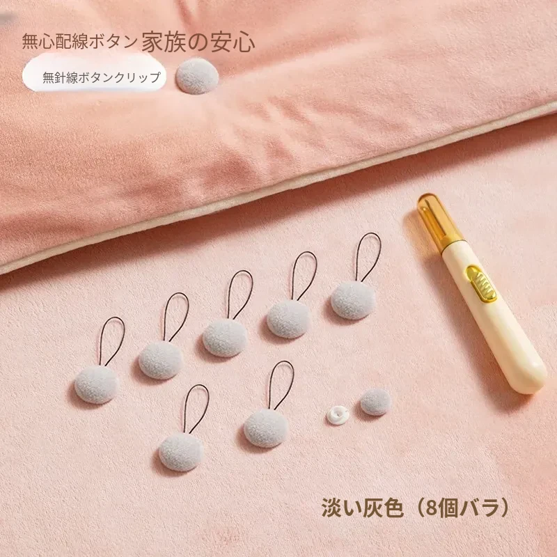 淡い灰色-8個装【両面フリース留め具/薄さ厚さ共用】取り付けツール付き
