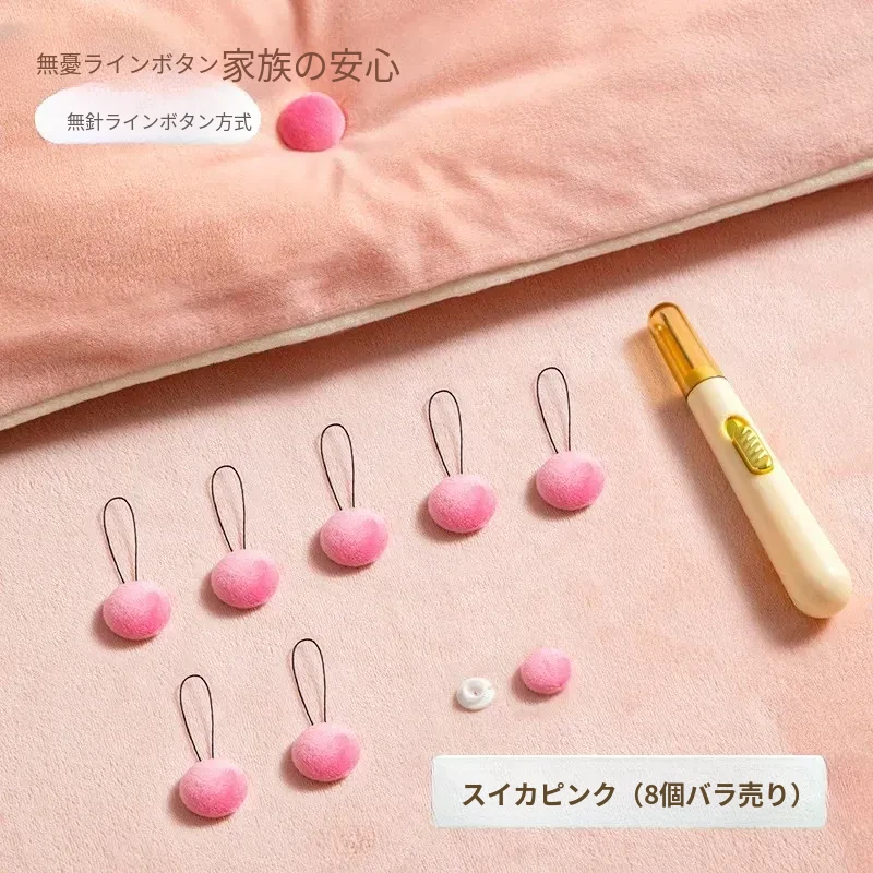 盈盈ピンク-8個装【両面フリース留め具/薄さ厚さ共用】取り付けツール付き