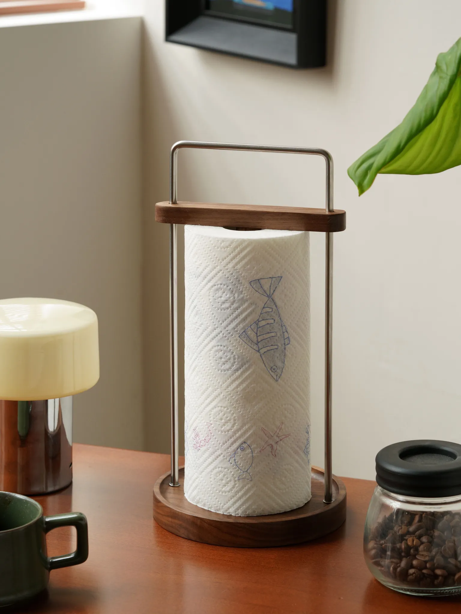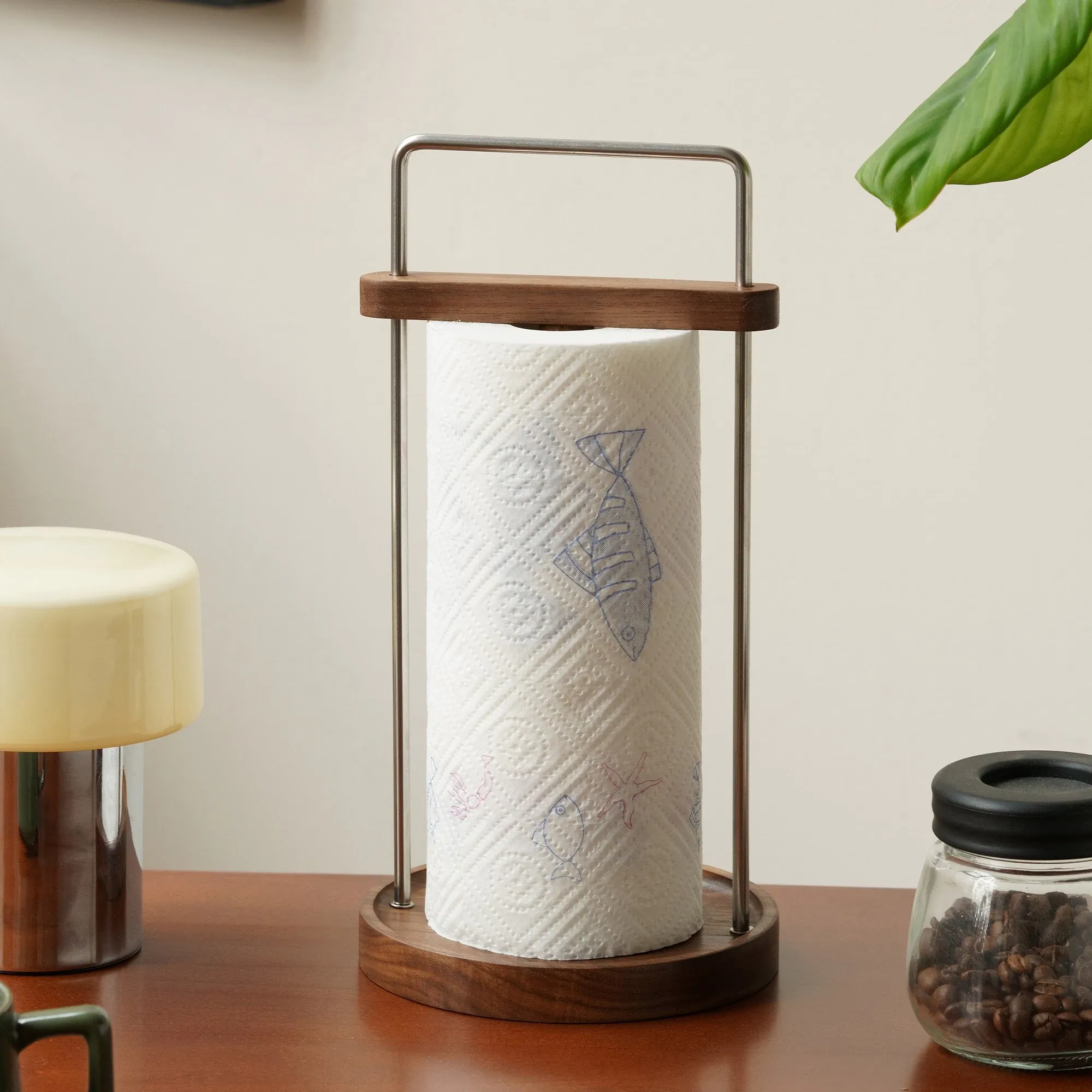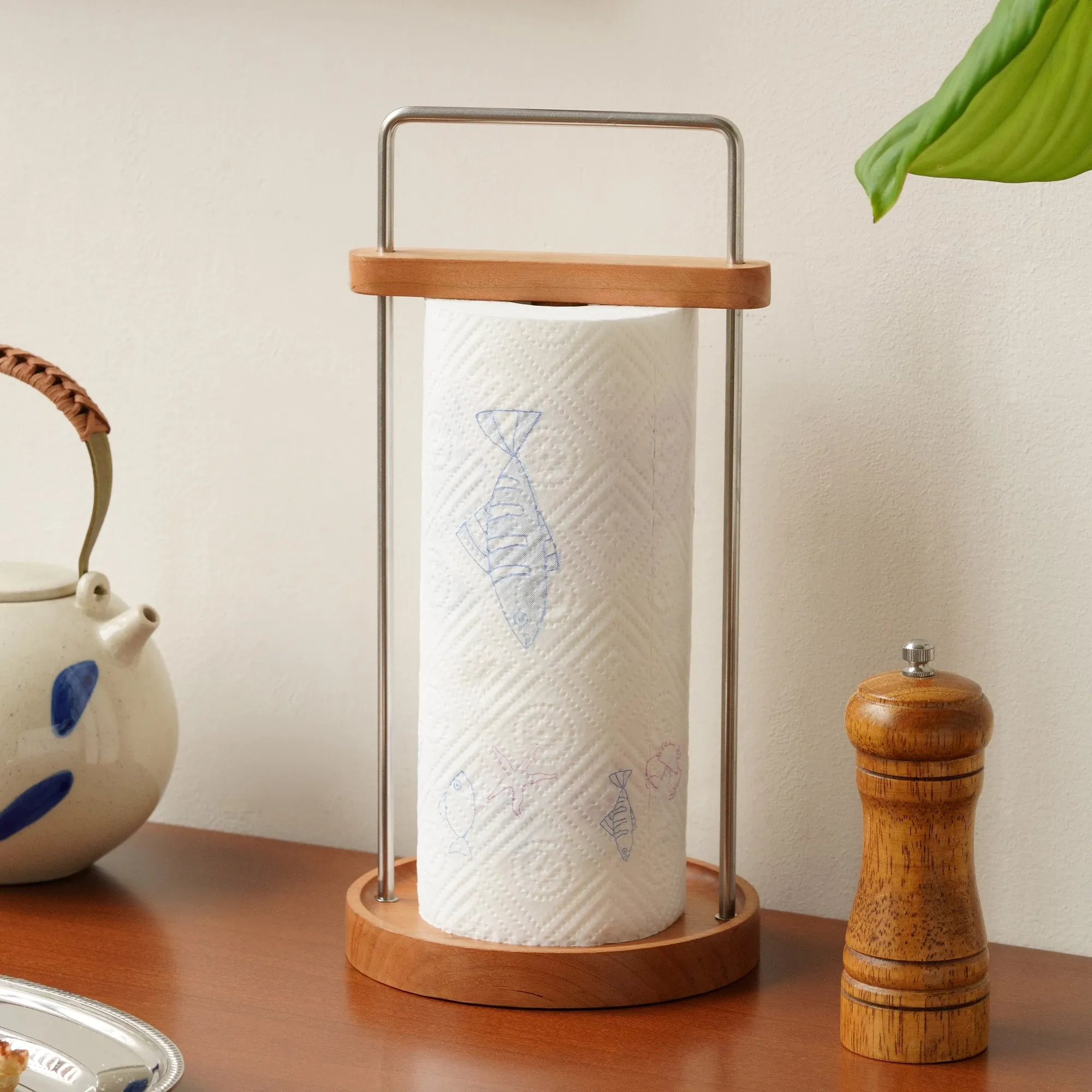 ダオヘキッチンペーパーラック 木製スタンド式油吸収ペーパータオルホルダー キッチン用ペーパータオル&ラップ収納ラック おしゃれで機能的、キッチンをスッキリ整理!