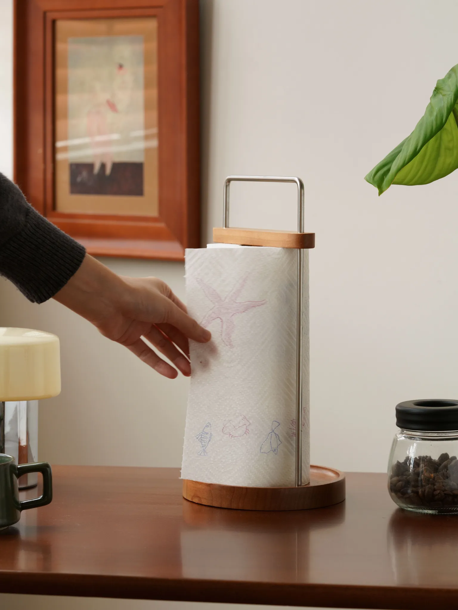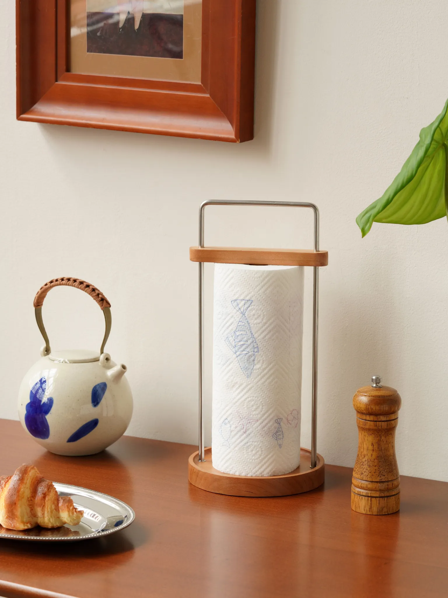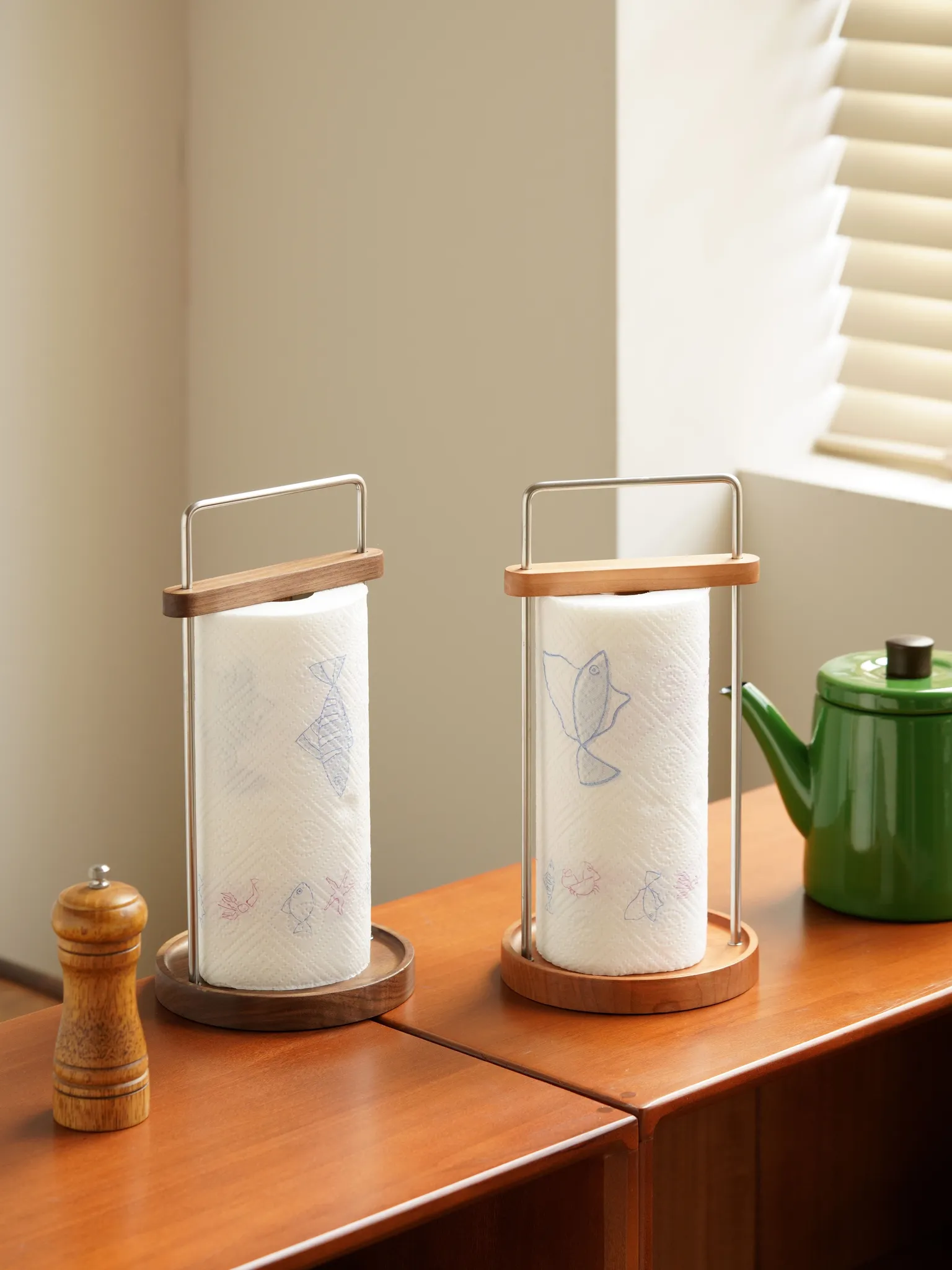 ダオヘキッチンペーパーラック 木製スタンド式油吸収ペーパータオルホルダー キッチン用ペーパータオル&ラップ収納ラック おしゃれで機能的、キッチンをスッキリ整理!